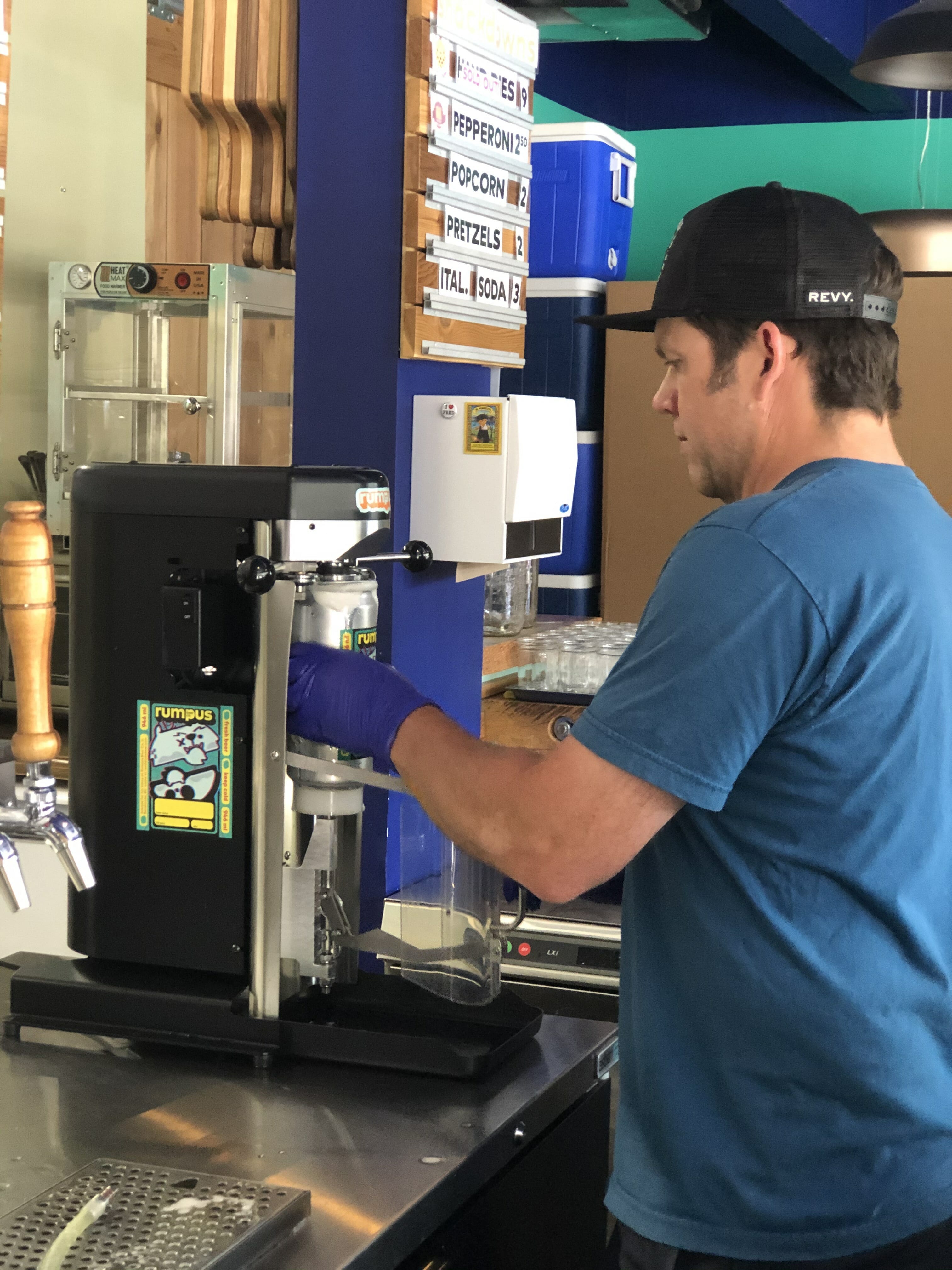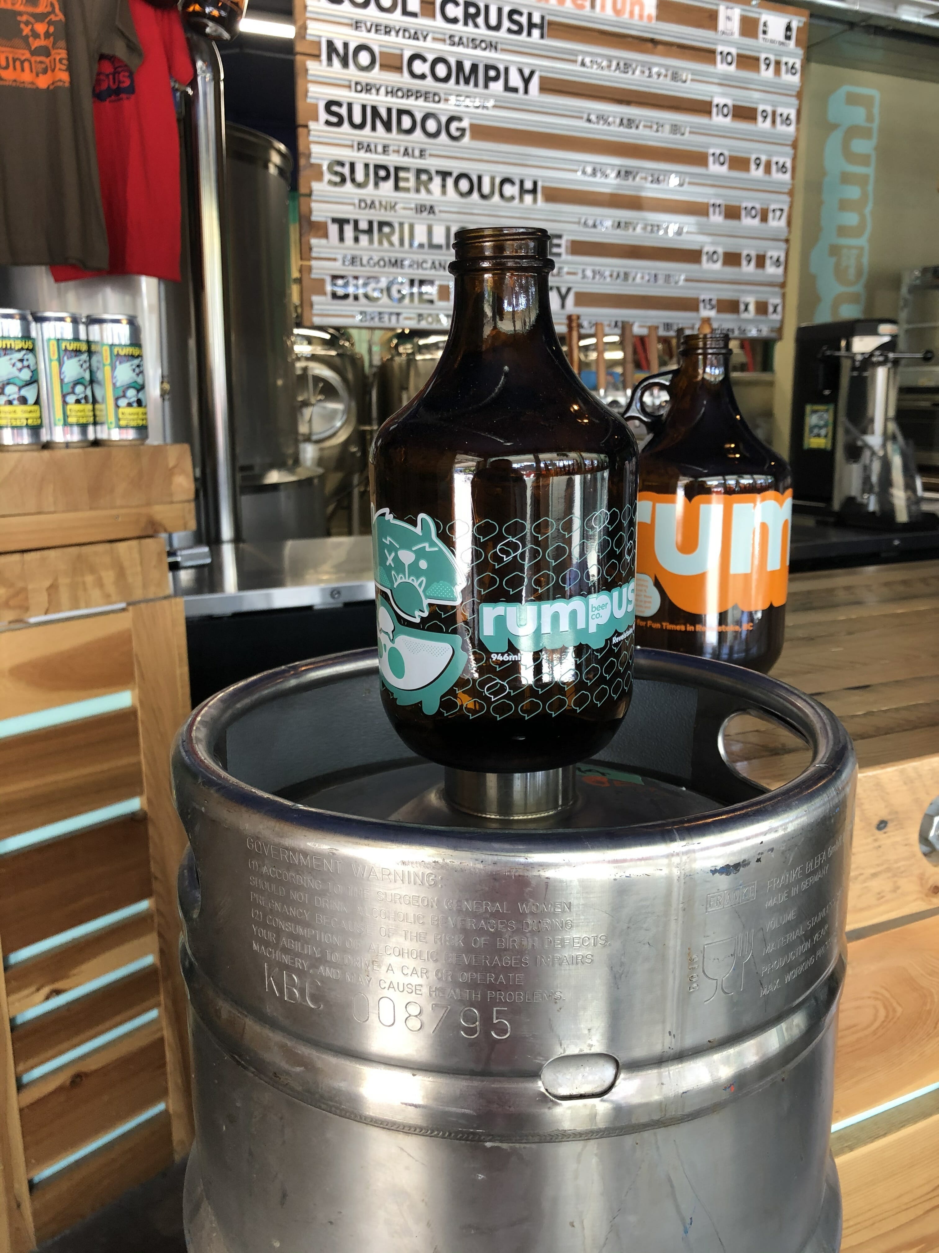 Even though Rumpus had only been open a short time, it was evident that they had already built a loyal following in Revelstoke. They added an online store to sell growlers, bought new equipment and packaging to start filling crowlers, and set up a station at the door for people to purchase beer. The beer-to-go station was busy with people coming and going regularly, always stopping for a chat and a catch-up with Fred while picking up their beer.