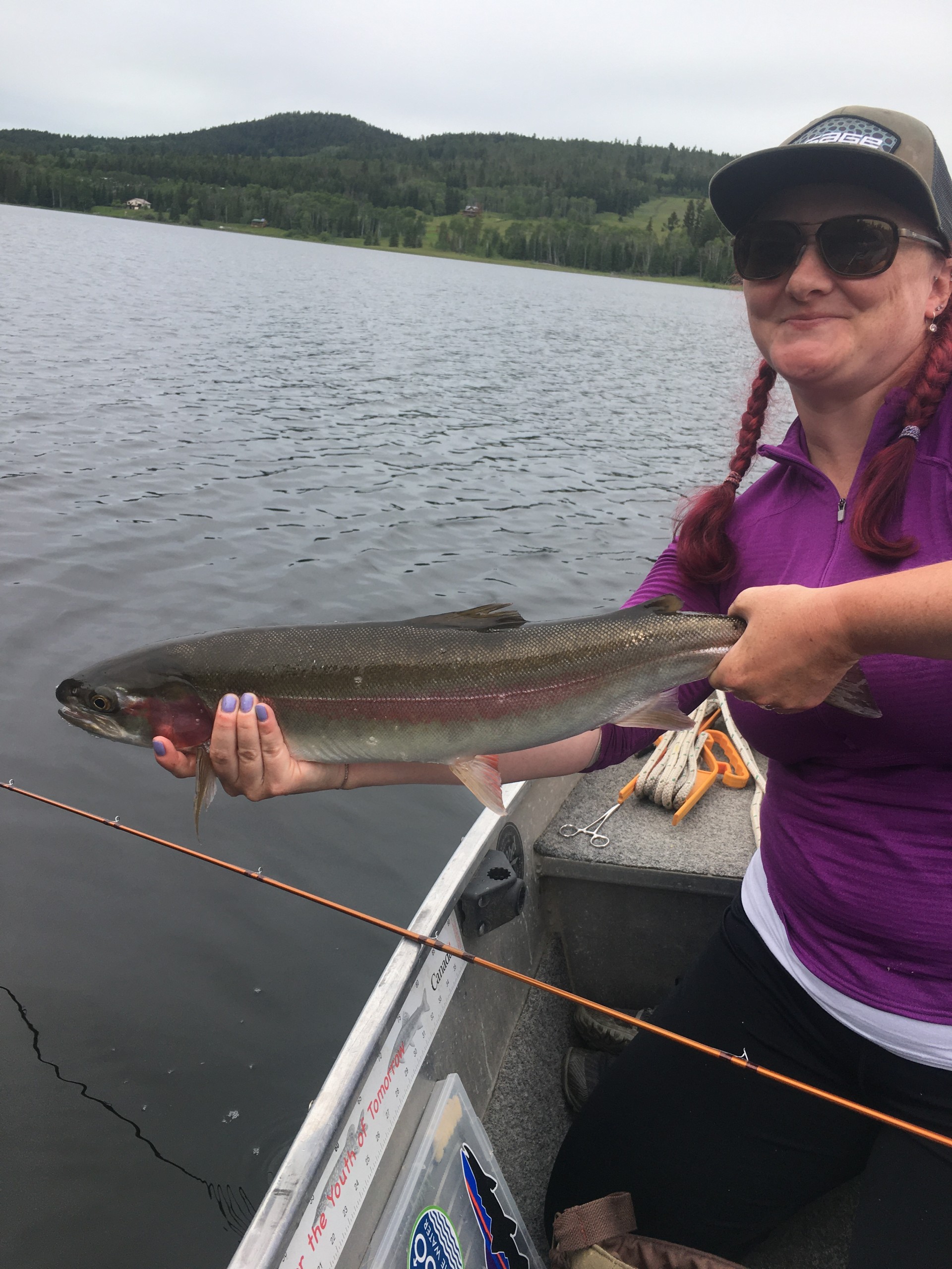 One thing’s for sure though, whoever said “There’s no bad weather, only bad gear,” has definitely spent time in the Cariboo. Having good rain gear is essential to any outdoor activities here. Our first day on the water was a real demonstration of the volatility of spring weather. We were hailed on, then treated to a respite of blue skies and sun before another round of downpour started. It was the kind of day that made me very happy to come back to a toasty warm RV where we could properly dry out our clothes.