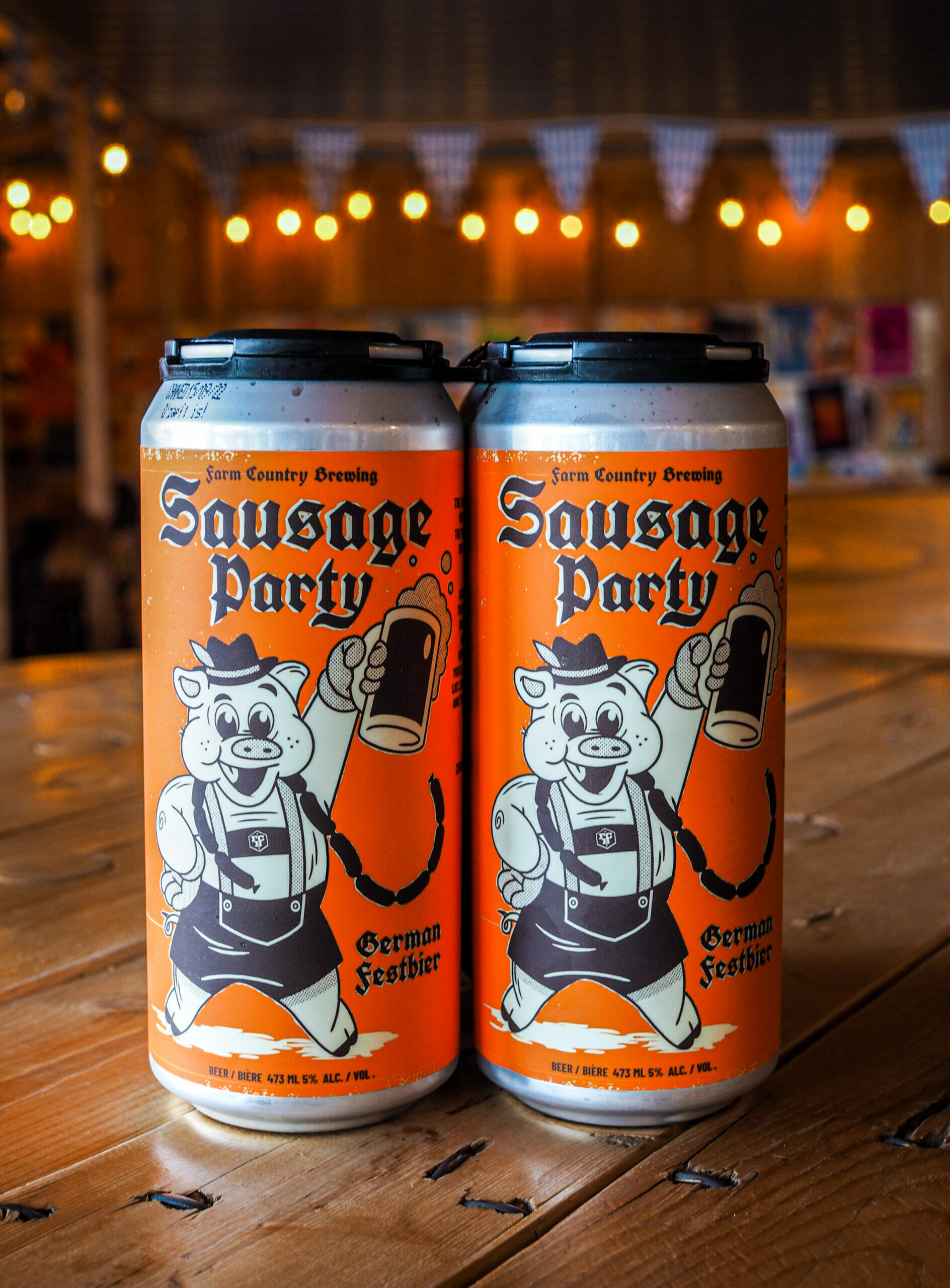 - Sausage Party (5% ABV | 22 IBU) This smooth, clean pale lager has a delicate malty flavour with light floral hop notes and a golden hue. Prost!