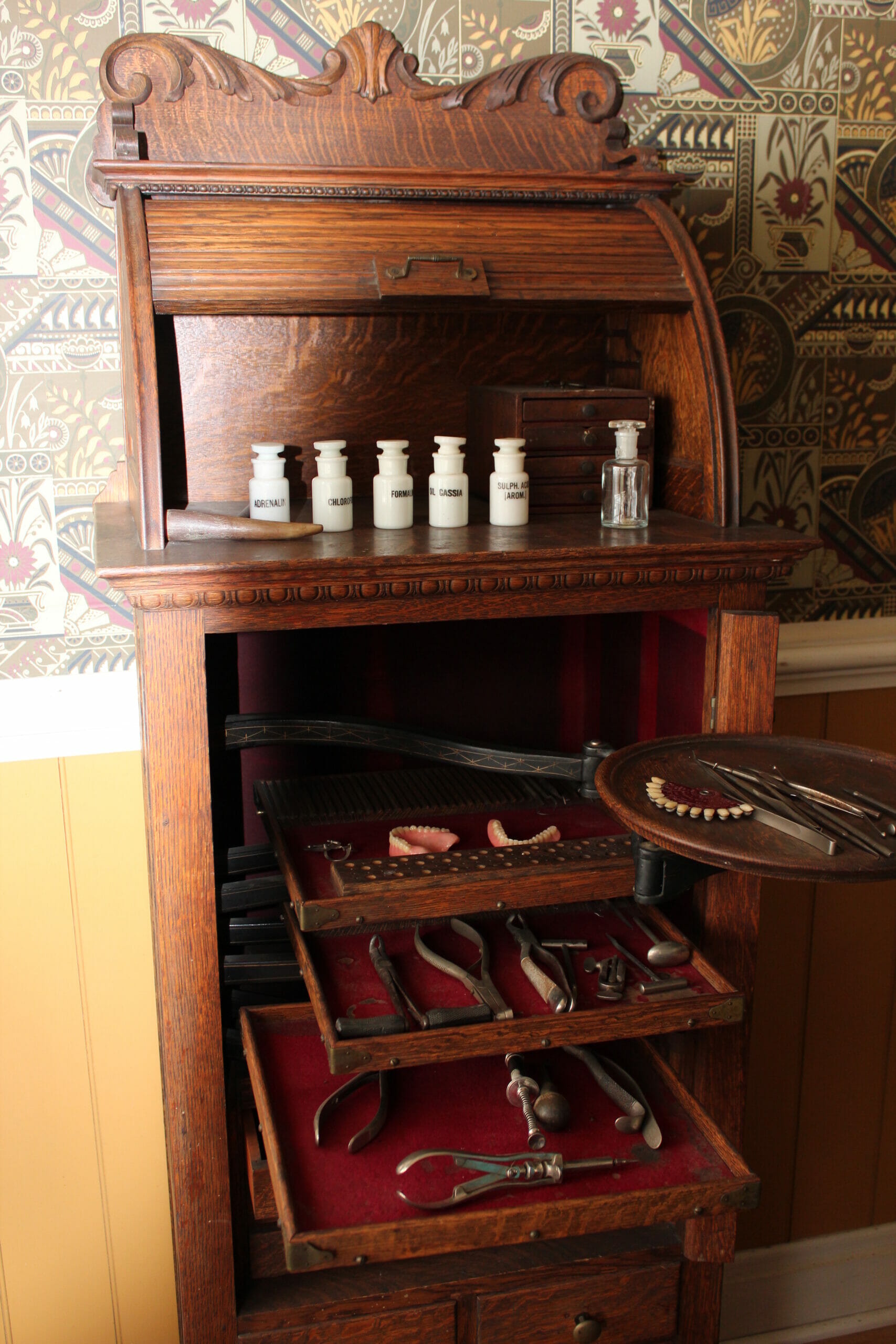 The reconstruction of the building that housed Dr. Jones’ dentist office was completed in 1961 with the assistance of the British Columbia Dental Association. The replica office includes a chair and a variety of dental instruments appropriate to the era, though none of them were owned or used specifically by Dr. Jones himself.