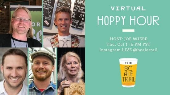 Kick-off BC Craft Beer Month with our monthly virtual hoppy hour on October 1st, from 6:00 pm-7:00 pm. Join Joe Wiebe with guests: Lundy Dale, founding member of BC Craft Beer Month (celebrating 10 years!), Kyle from Empty Keg Brewhouse in Merritt, and Dave and Danny from Vancouver Island Brewing in Victoria to do a live tasting of the exciting new Explore BC IPA. Tune into the BC Ale Trail’s Instagram channel.