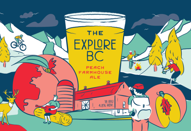 This is the second EXPLORE BC beer that has been released for BC Craft Beer Month. This year’s version is a Peach Farmhouse Ale, which is a collaboration between six breweries from across BC. This limited edition beer is a true representation of our province that pairs perfectly with BC’s natural beauty.