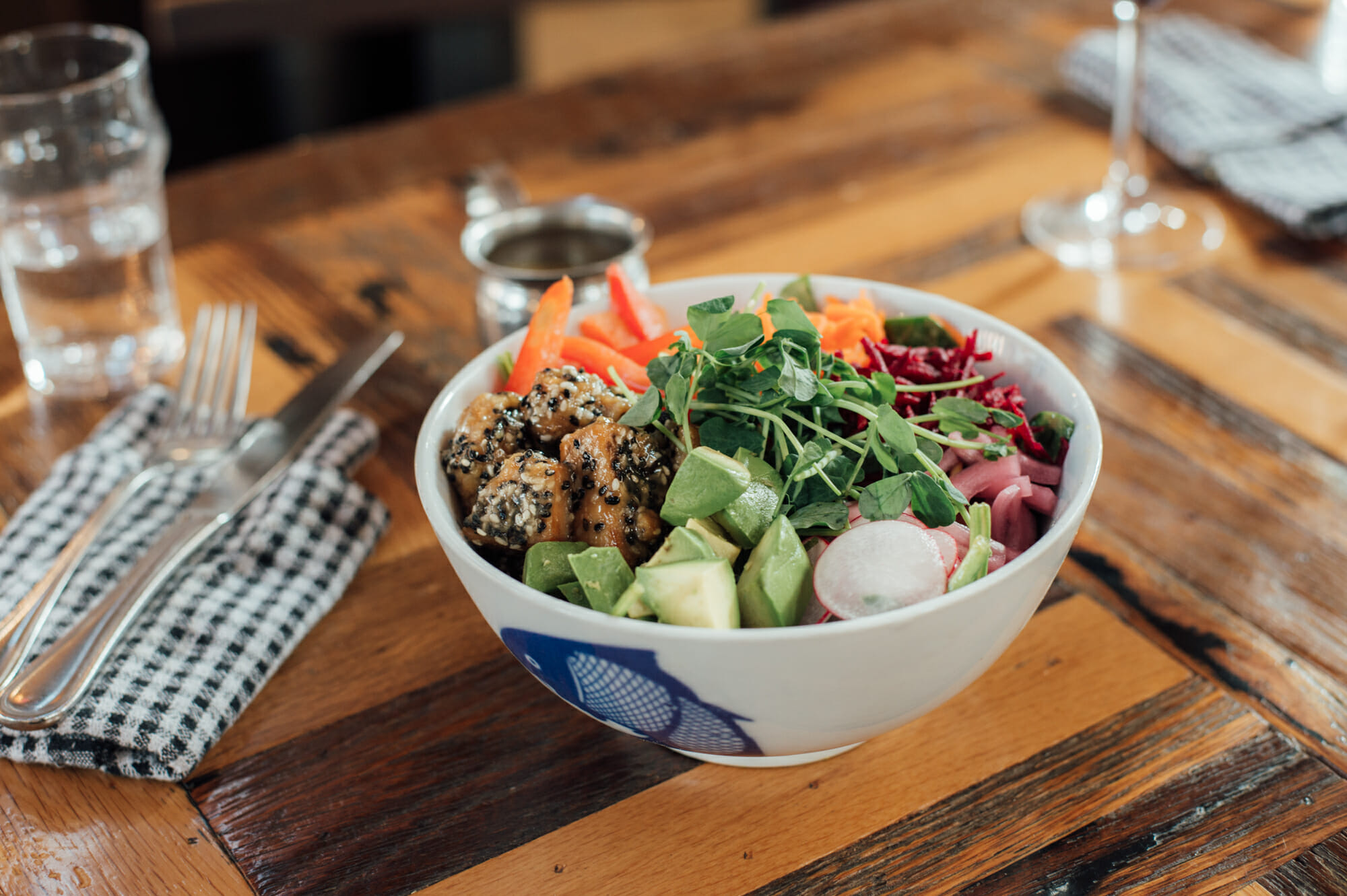 A standout spot for those seeking vegetarian options in the Lower Mainland. Menu highlights include Roasted Squash Bowl, Halloumi Sandwich, Roasted Zucchini & Mushrooms Pizza and vegan Teriyaki Bowl.
