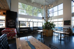 This small batch brewery has a visually stunning tasting room that boasts a live tree, a beautiful mural by a local artist, and a refurbished Austin Mini hanging on the wall (seriously). The two-story space is very welcoming with big windows bringing in lots of light. And the addition of a new patio is an added bonus.