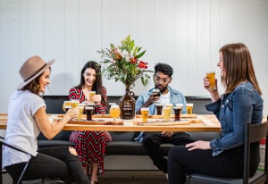 Tin Whistle’s taproom is located in the historic Cannery Trade Centre where the peaches and cherries of the region were once canned. Swing by for a beer flight or pint and enjoy the historic industrial space, listen to the records playing all your favourite tunes, and snack on locally-sourced snacks or bring in your own food to enjoy.