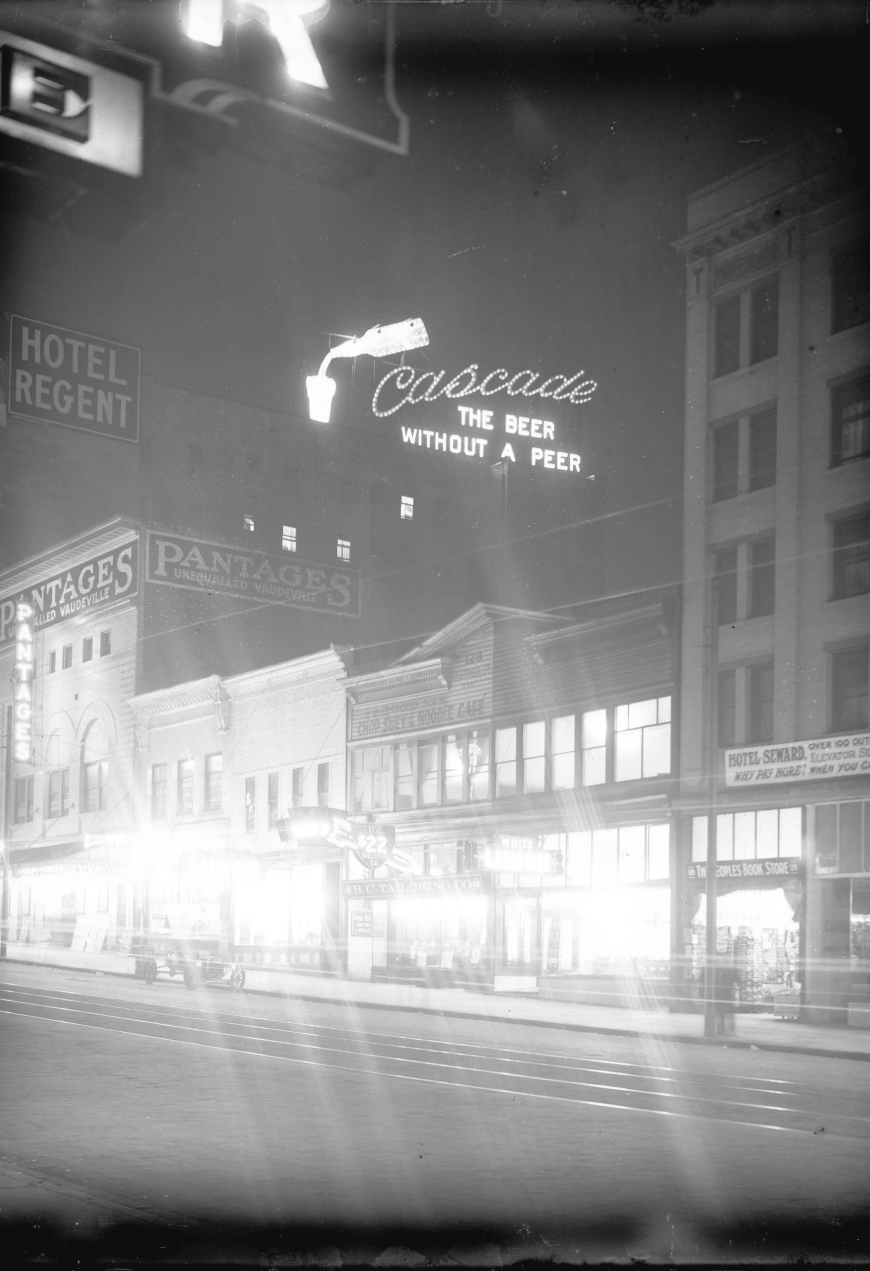 A popular city-wide contest to name Vancouver Breweries’ flagship beer soon got the word out about the amalgamation. For a chance at a $50 prize, thousands of citizens sent in their name suggestions, from “Kitsalano” to “Acme.” The winner, however, was Cascade. Cascade beer would end up being one of the best-selling beers for decades. It was advertised in local papers as “beer that is as pure and healthful as the rippling waters of a mountain brook … contain[ing] only the purest and most healthful of ingredients … [It] is a drink fit for the most delicate lady.”