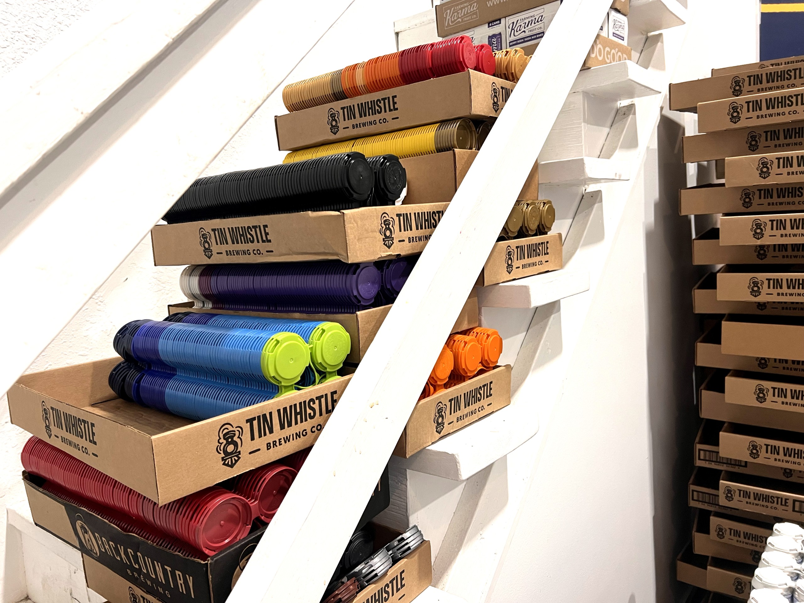 The brewery extends recycling and reusing to their PakTech buy-back program. The plastic toppers from 4- and 6-packs of beer would cost the brewery about $0.25 each to buy new. Instead, Tin Whistle offers customers a $0.25 credit for every topper brought back to be reused.