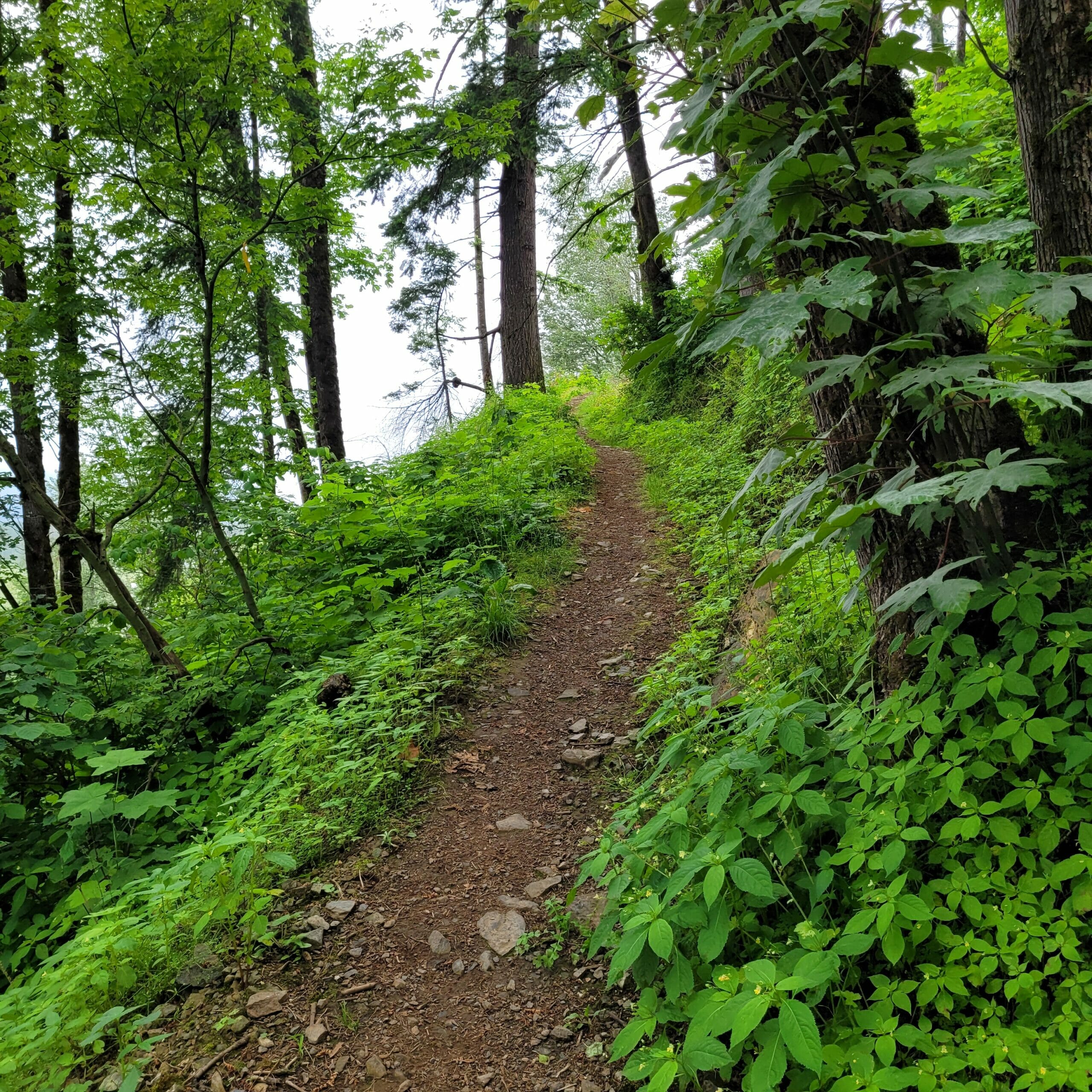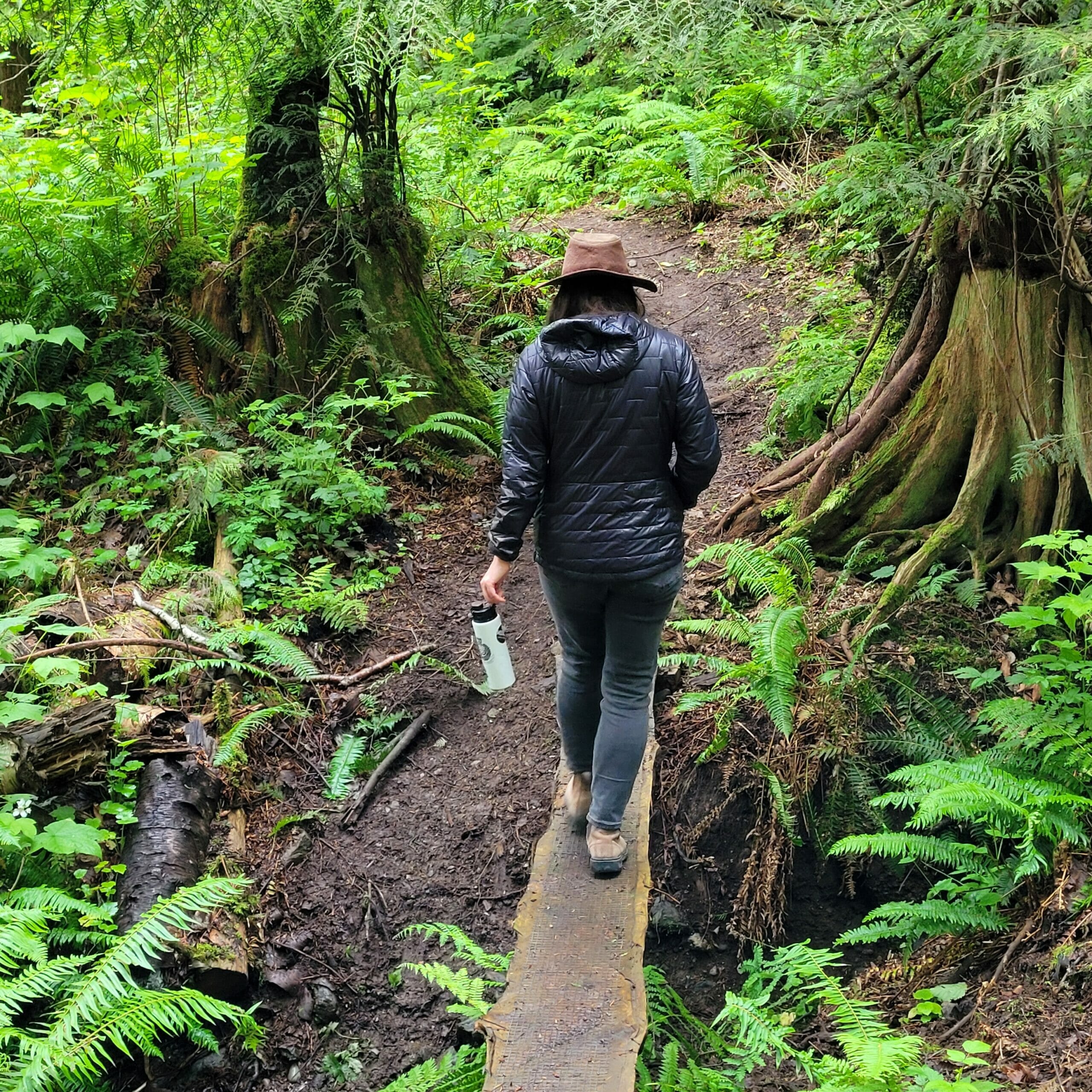 To kick off the Summer 2022 Chill and Thrill Ten Trail Challenge, my friend Kate and I chose the Duck Farm Loop trail just outside of Yarrow. I had never heard of this trail, but it was a hidden gem, despite (or perhaps because of) being slightly overgrown and less maintained than more popular trails. Kate and I saw no one else during our nearly six-kilometre trek through fern-blanketed forests, steep narrow trails, and numerous creek crossings. Thanks to the detailed instructions provided on the Chill and Thrill site, we managed to avoid making any wrong turns and were able to enjoy the scenery with confidence, from the Fraser Valley views, to the waterfall halfway through the hike, to the beautiful (yes!) slugs and snails who greeted us from the trailside. Birdsong and silence were our only aural accompaniment. After we finished, I marked the trail as complete in my account on the website, received and posted my completion badge, and added the #tentrailchallenge hashtag to be entered into the prize draws (I’m keeping my fingers crossed!).