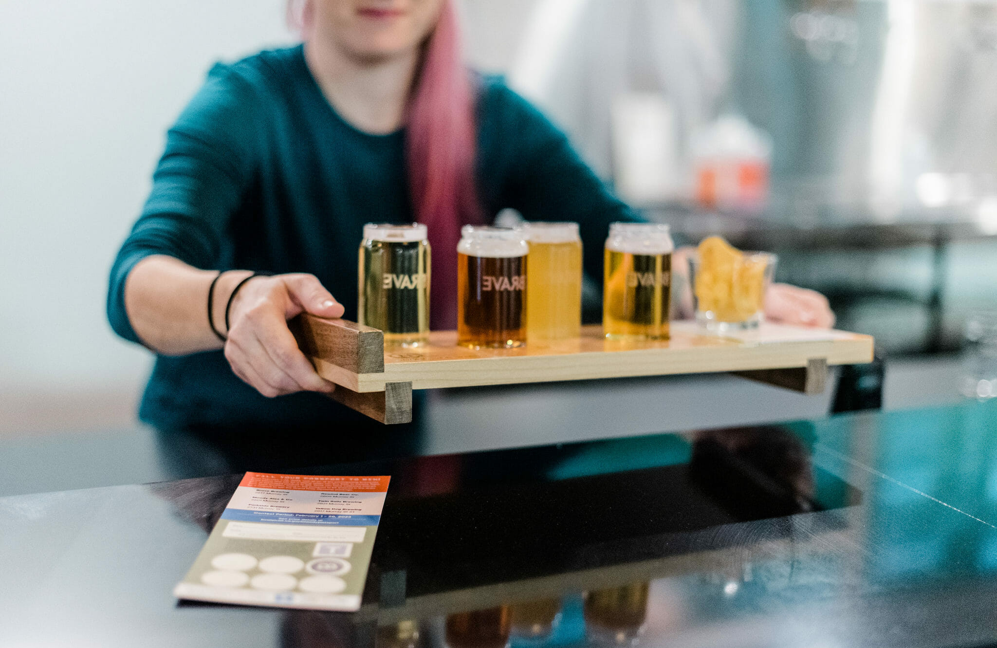 Our next stop for a stamp on the passport was Brave Brewing, which makes its home in what was once The Bakery Brewing. The Brave view on things shows an appreciation for the simple and good things in life. Like potato chips, of which you get a small cup with your beer flight. And while I’m not a lager girl in particular, the Grace Under Pressure Lager may change my mind. Enjoy your pints inside or outside by the cozy fire pit knowing that the brewery has pledged 1% of their profit, product, time and equity to support non-profits in the community.