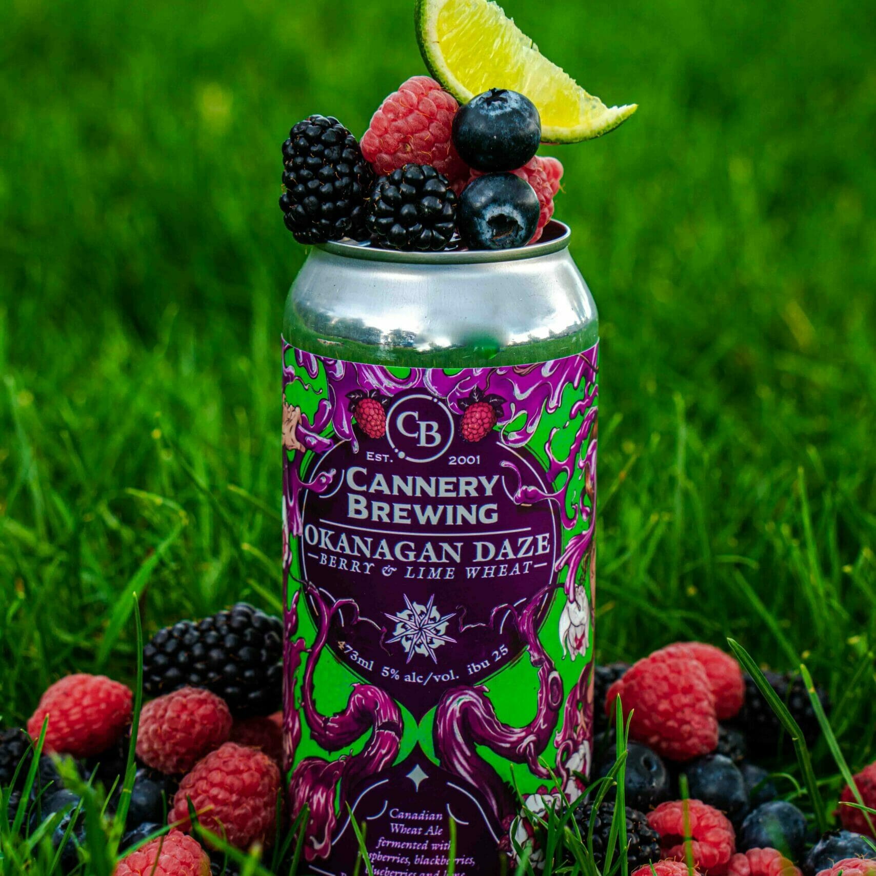- Okanagan Daze Berry & Lime Wheat Ale (5% ABV | 25 IBU) This new version of Okanagan Daze is fermented with raspberries, blueberries, blackberries and lime.