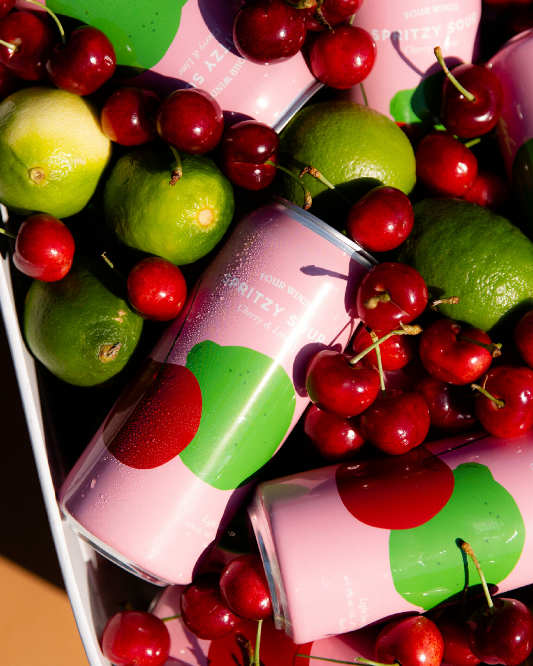 - Spritzy Sour – Cherry & Lime (4% ABV) A spritzy, light sour ale with a big juicy punch packed with cherry and lime.