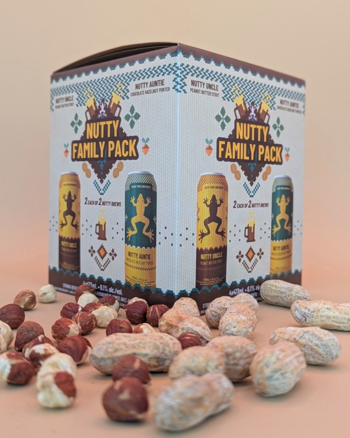 - Nutty Family Pack (6.1% ABV) This 4-pack includes 2 cans each of Nutty Uncle Chocolate Peanut Butter Stout and Nutty Auntie Chocolate Hazelnut Porter.