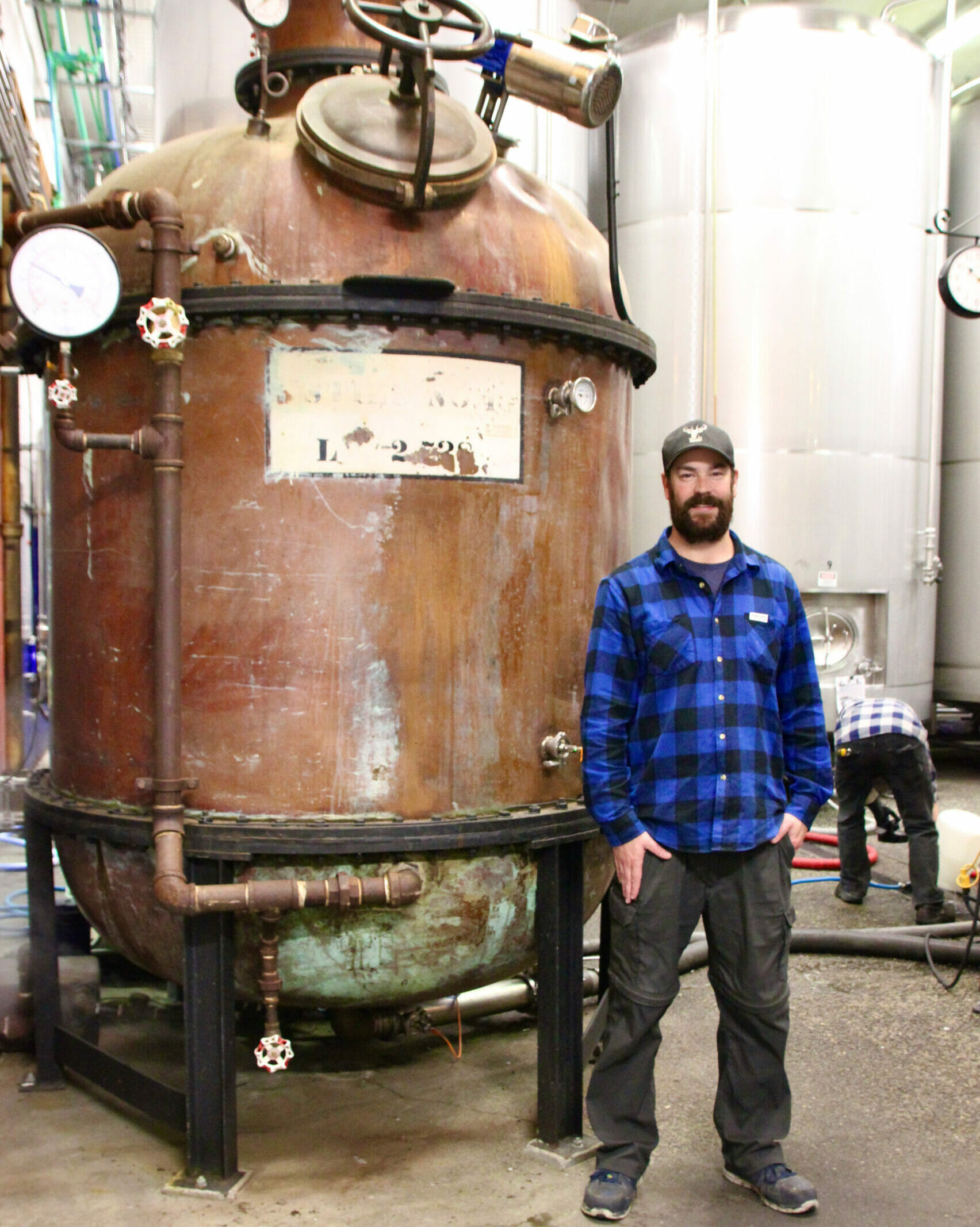Driftwood had long thought of opening a distillery, but with its multiple production locations, it just wasn’t feasible. Once the spacious new warehouse was obtained, they hired Brendan Cook to make their first spirits. They also acquired two stills made locally by Specific Mechanical Systems and installed them in their new space, building a small “cupola” in the roof to house the tall still’s column.