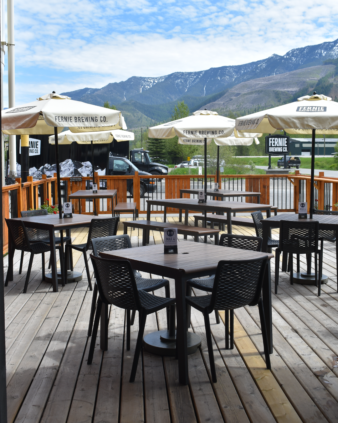 Parksville’s Mount Arrowsmith Brewing has their sunny patio ready to go too! Five picnic tables have been added across the parking lot as a temporary extension, along with the fully licensed patio that’s already attached to the brewery.