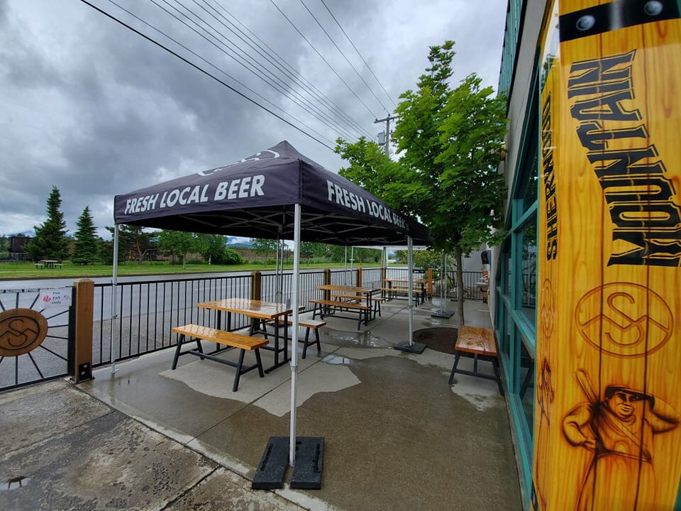 Westward in Terrace, Sherwood Mountain Brewhouse has reopened with sit-in service on their enlarged patio only. Find outside hand washing stations and a walk-up order window for fresh pints at a safe physical distance. Stay dry when those clouds roll in from off the Skeena River under Sherwood’s set-up tents.