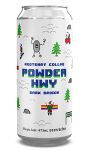 This Kootenay Collaboration celebrates ski season in the mountain playground of British Columbia known as the Powder Highway. It was brewed with seven specialty malts, including naked oats and smoked malt, along with European hops and cranberries, resulting in a dark and dry Saison with a touch of smoke and a tart kick. The perfect après beer to pair with light Kootenay powder!