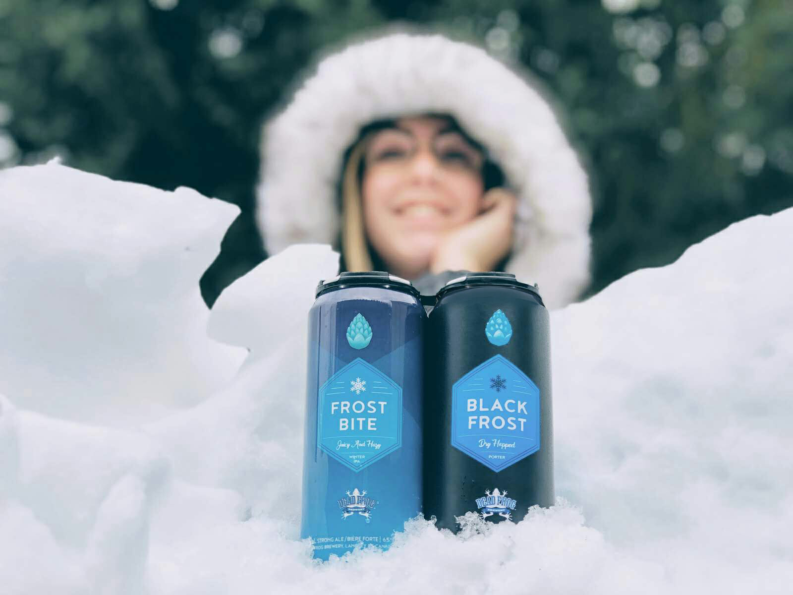A juicy, bright amber ale with a splash of fresh orange, a crisp malt base, and a refreshing sour finish. - Frostbite Winter IPA (6.5% | 45 IBU)