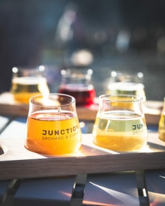 Come and enjoy the rustic charm of our dog-friendly cidery and orchard. Our knowledgeable staff are ready to guide you through our cider offerings and answer any questions you may have. Don’t forget to grab a flight and relax on our spacious outdoor picnic area, complete with yard games and picnic tables. So, whether you’re here for a romantic date or a family outing, we’ve got you covered. We can’t wait to raise a glass and cheers to a fun and professional experience at Junction Orchard & Cidery.