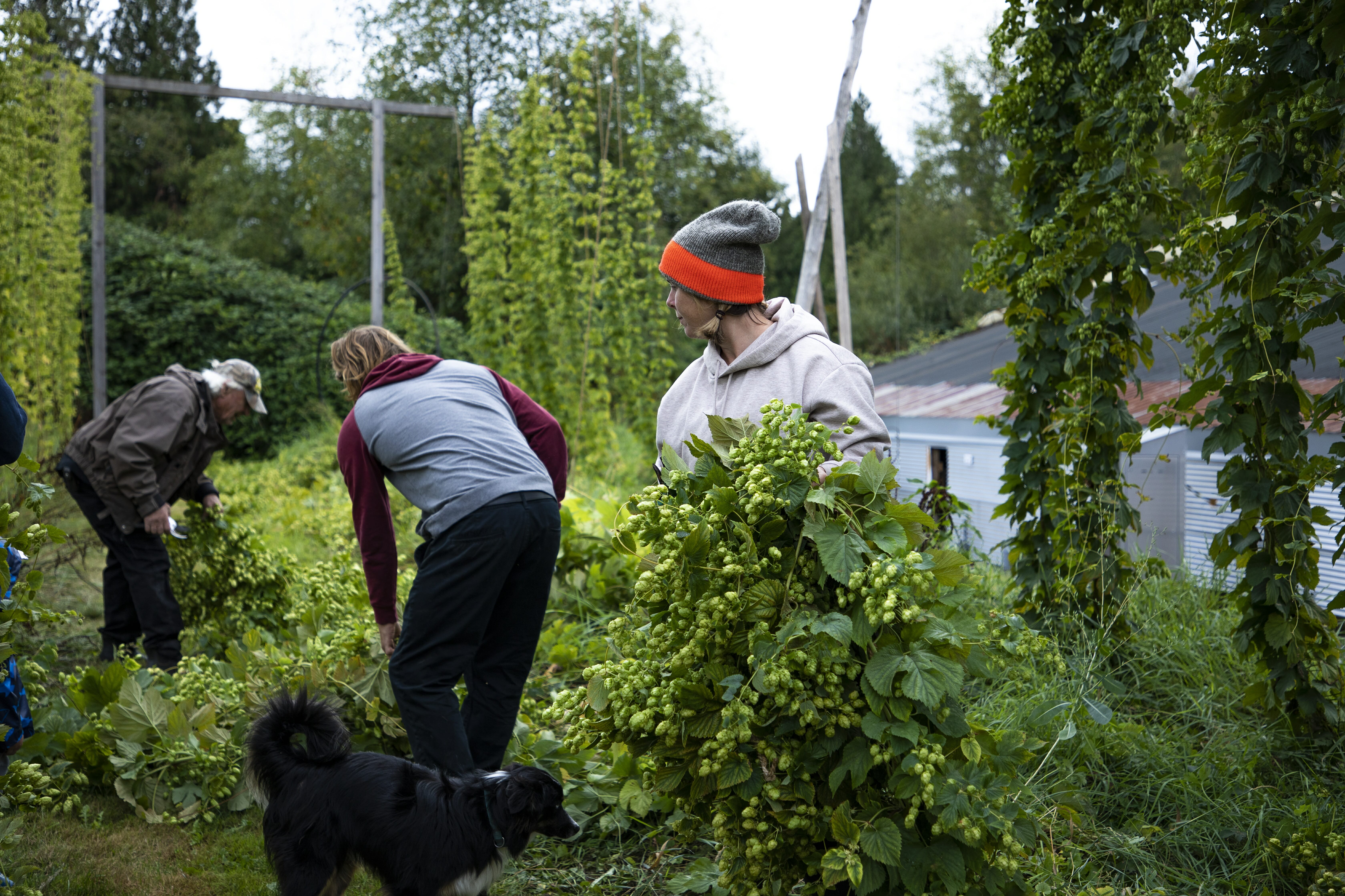 The hops I helped pick on harvest day were Centennials for a special fresh hop collaboration brew with Brookswood Brewing. Brookswood’s founders were there harvesting hops along with everyone else, and they are looking forward to opening their doors nearby in early 2022, with Legit Hops founder Dave Morrish as their brewmaster. This fresh hop ISA collab gestures to the sense of community felt among Langley’s breweries.