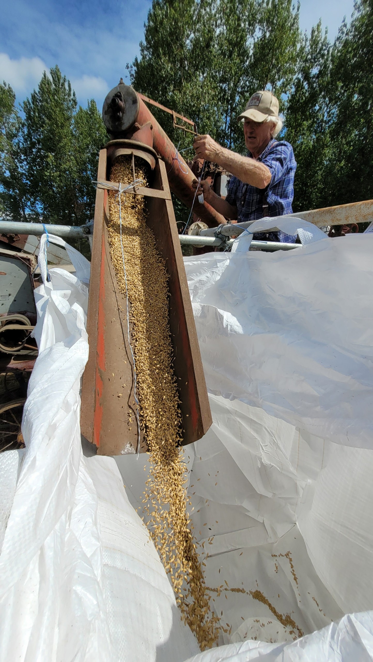 Unbelievably, Andrew and Melanie actually hand-scythed their first barley harvest themselves, but they also now use a combine and a 1950s-era antique threshing machine. It’s huge, impressive, and a little scary: a piece of farming history brought to life. As the feeder pulls sheaf after sheaf after barley into its spinning blades, the thresher noisily separates the barley kernels from the stalks, eventually pouring pounds of kernels into waiting bags and spewing clouds of chaff out the other side. The process fills the air with dust and hay, and you’ll be brushing the bits and pieces off your clothes for hours.