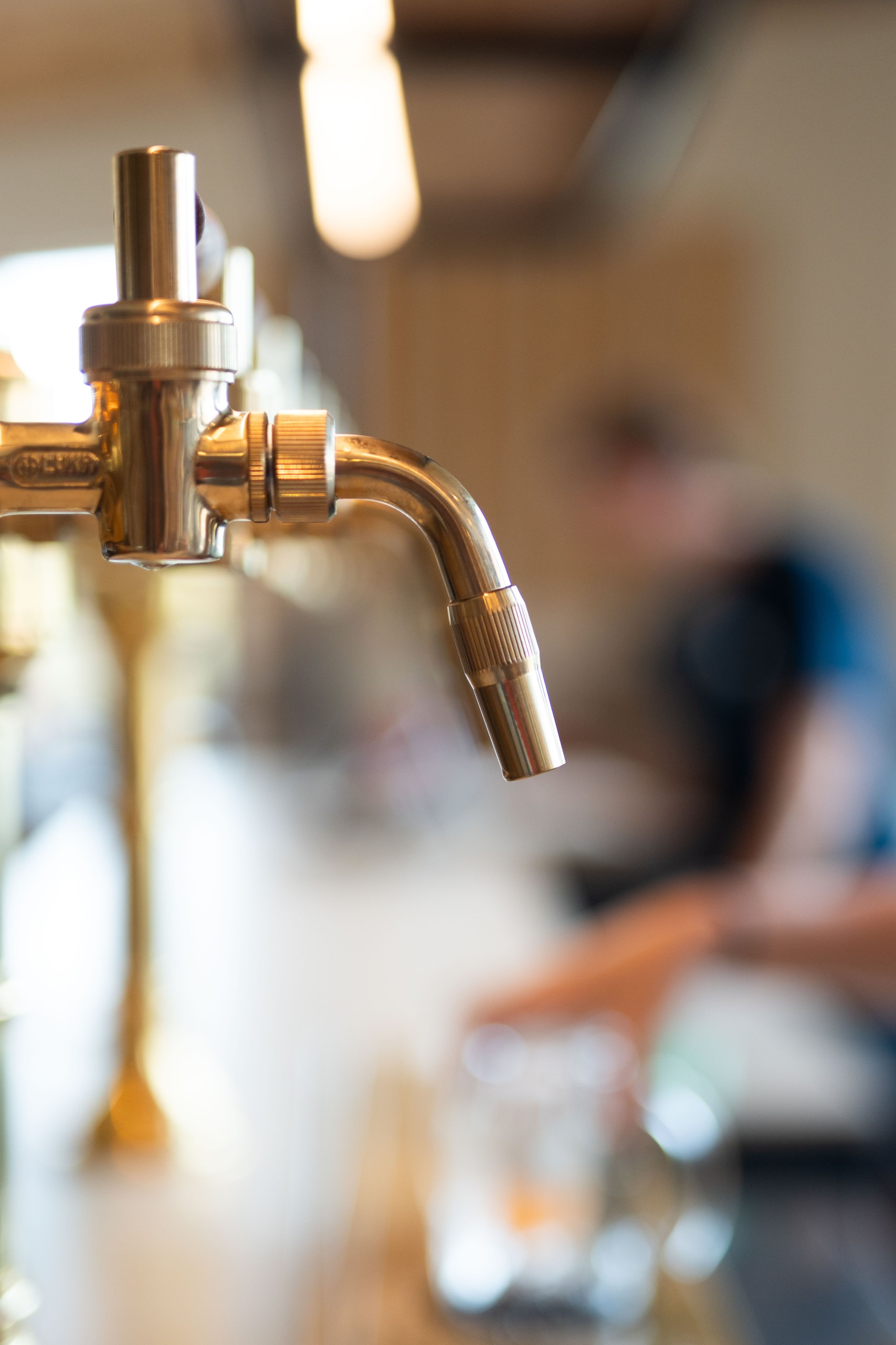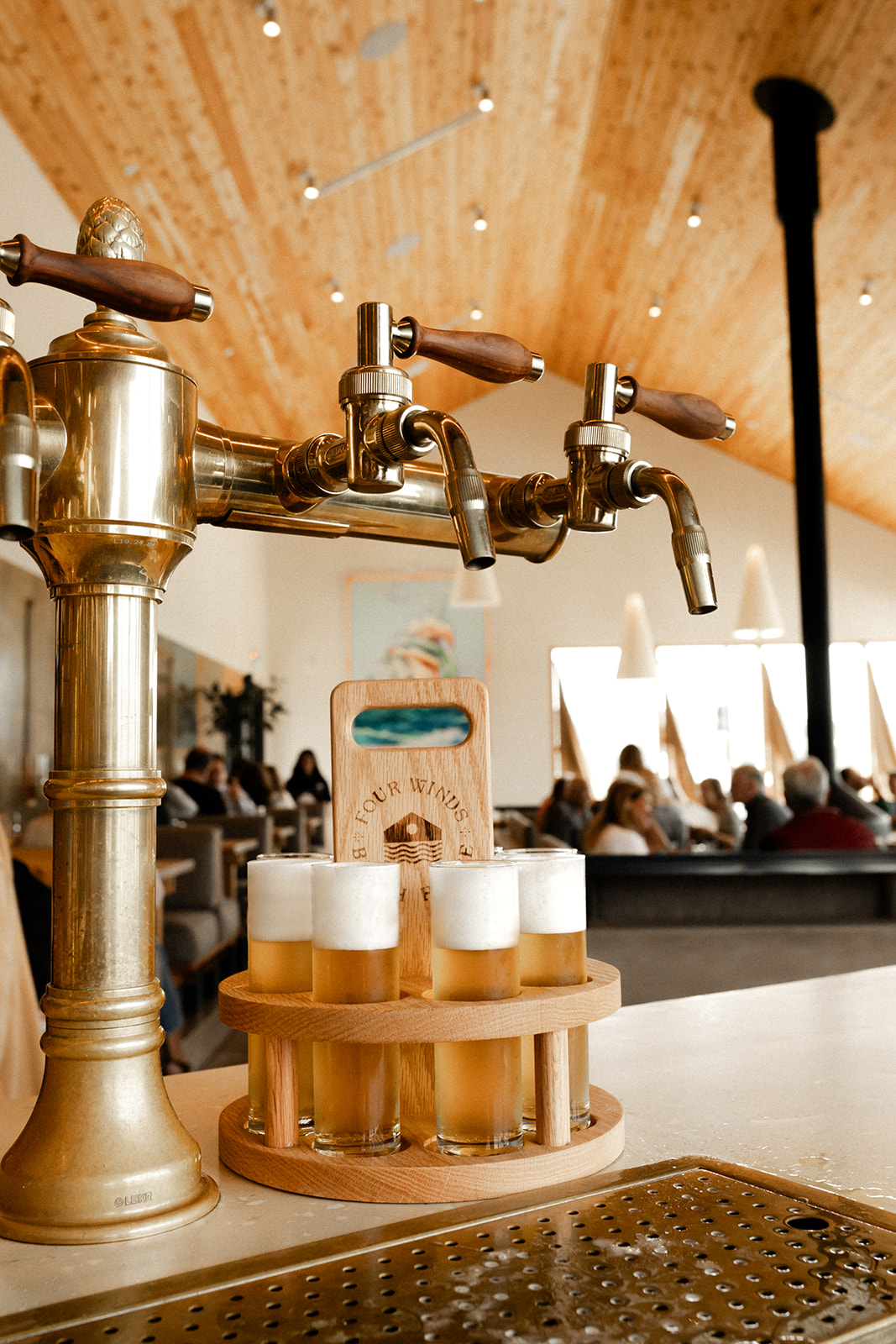 This was in April. A few months later, he was installing the beautiful burnished brass tower (without any fingerprints) at Four Winds’ new Beach House & Brewery ahead of its opening that summer. That tower has eight “nostalgie” taps, which is the most traditional one Lukr makes, and the brewery also has another set of eight “freedom” taps, which are designed for the North American market (the tap handle swings forward rather than to the side so the taps only need three inches between each other whereas the traditional side-pour taps need four or five inches of space).