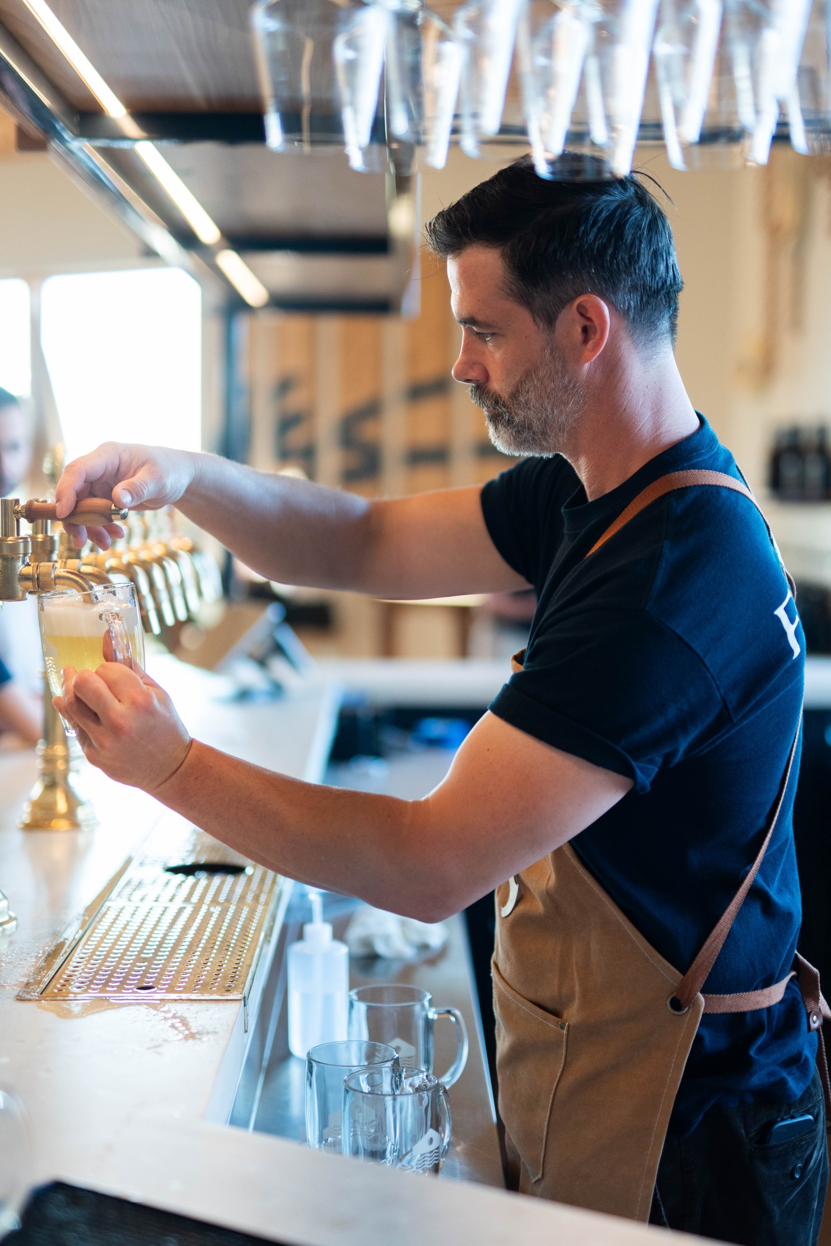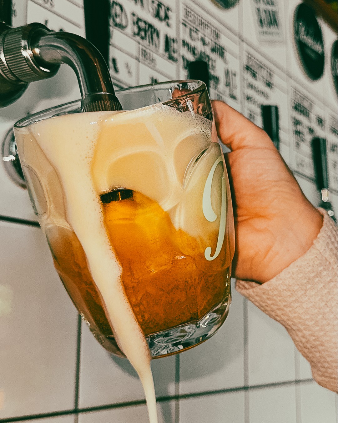 “First, the foam that sits on top is a controlled foam with really tight bubbles. It’s kind of similar to the foam of a latté. It’s really silky and soft. Once you get that foam cap there you fill the beer underneath, and with that foam on top, you’re not allowing as much C02 to dissipate. And then under that silky, smooth foam is really bright, vibrant, carbonated beer that’s protected from oxygen as well. So you can sip the foam, which is really lovely, you can go through the foam and get some really crisp beer, or you can mix the two and it’s another unique experience.”