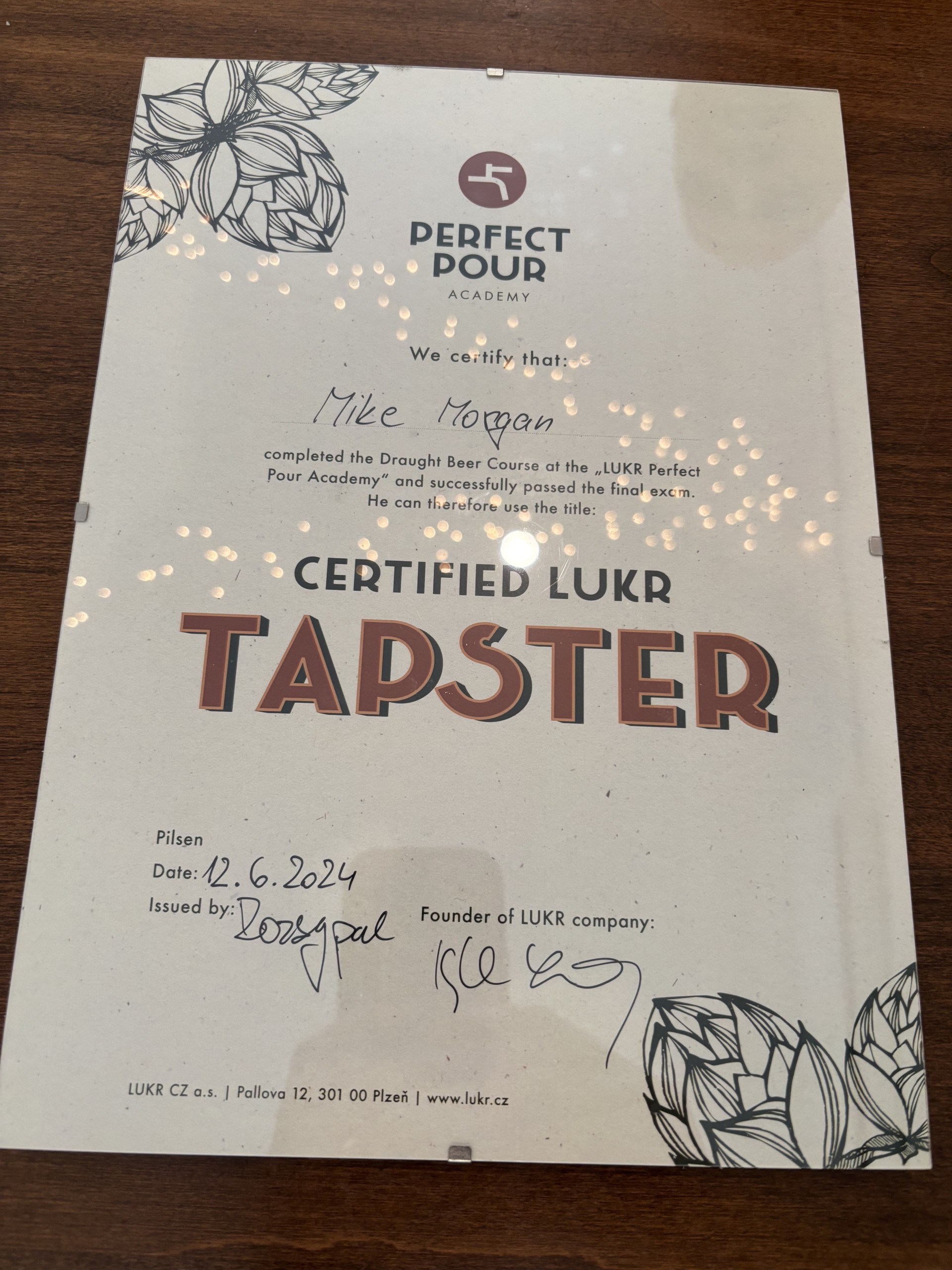 Mile Zero Brewing installed a traditional Lukr tap shortly after it opened in 2022, and eventually expanded its tap lineup with five Lukr freedom taps. Co-owners Michelle and Mike Morgan also travelled to Czechia to attend Lukr’s Perfect Pour Academy. The each attended a three-day intensive course where they spent 20 hours learning hands-on at Lukr’s Beer Training Facility before the “final exam,” which required them to pour pints at a busy beer cellar in Plzen, side by side with a professional tapster. In the end, Mike and Michelle both earned the title of “Lukr Certified Tapster.”