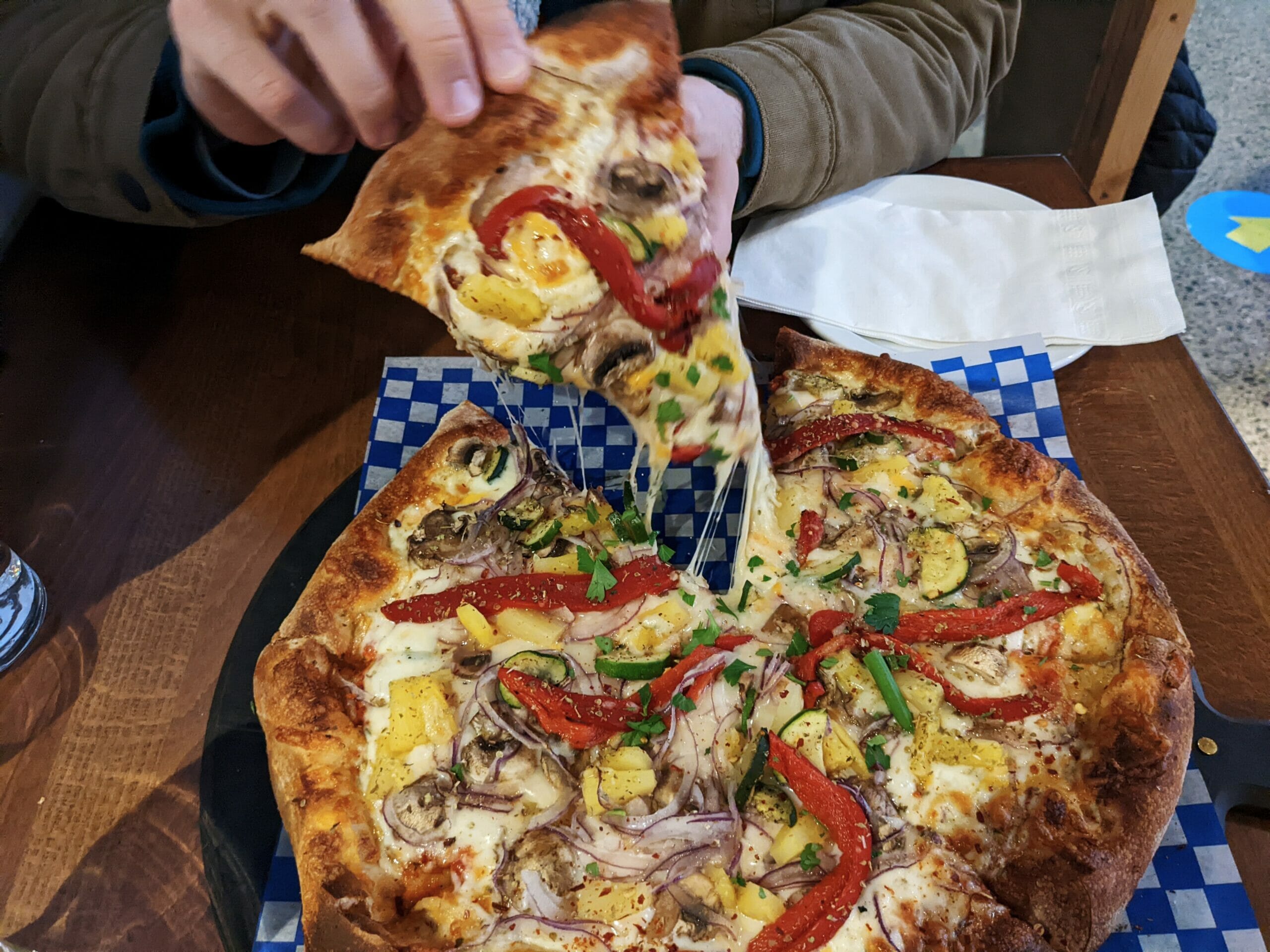 What was great about having Mount Arrowsmith’s pizza after Twin City’s pizza is they’re kind of different styles. Arrowsmith is more New York-esque style, perhaps? Not that I’ve been to New York. But it’s loaded with cheese in the best way, while still allowing the fresh toppings to shine through.