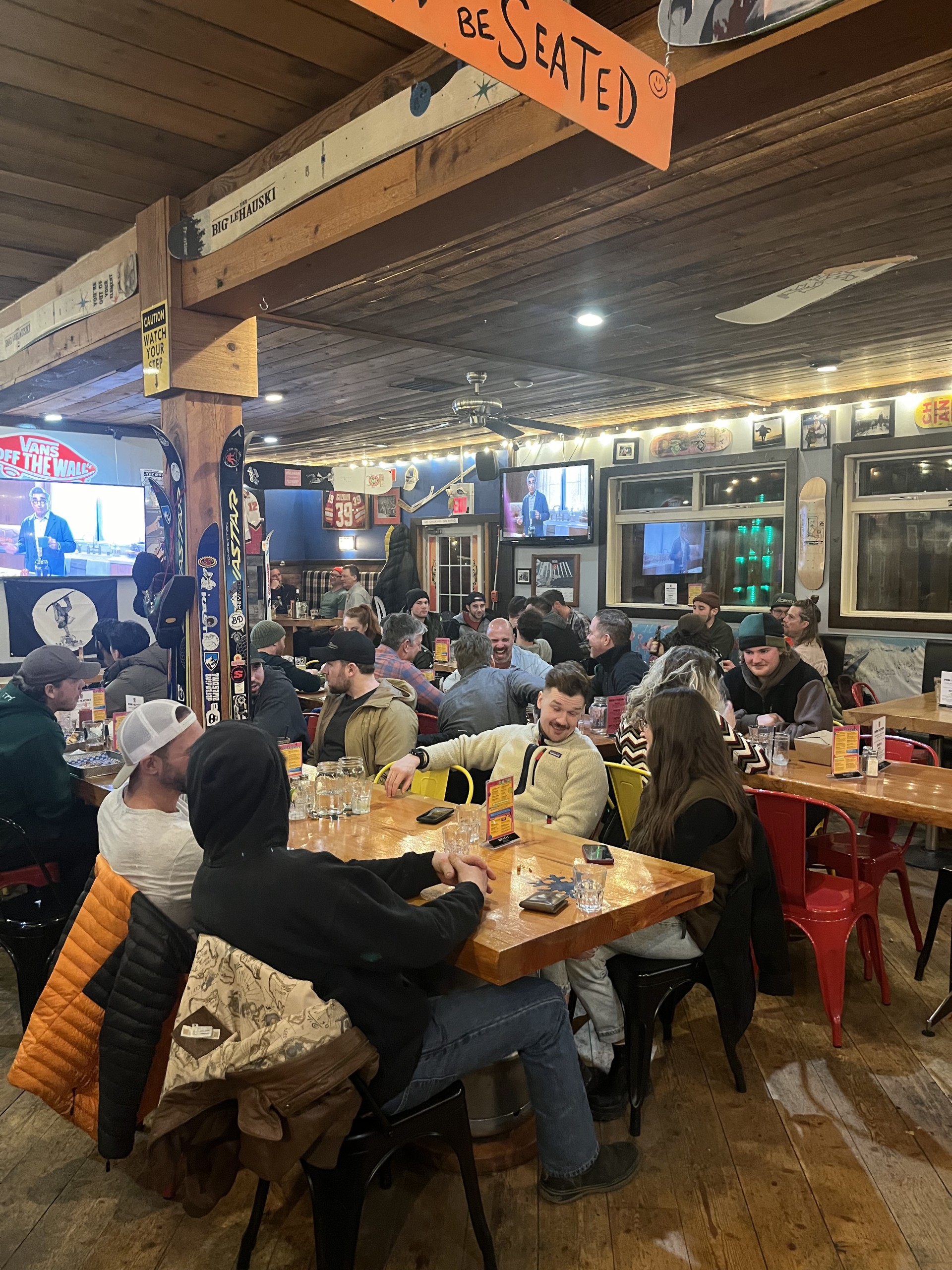 Continuing the downtown après pub crawl, Rumpus Beer Co. opened in 2019 and was named “The Best Après Adventure Spot” by Forbes. Wowza! This place is all about post-ski fun—the patio is hopping on a bluebird day with live music, pretzels, and a DIY growler fill station.