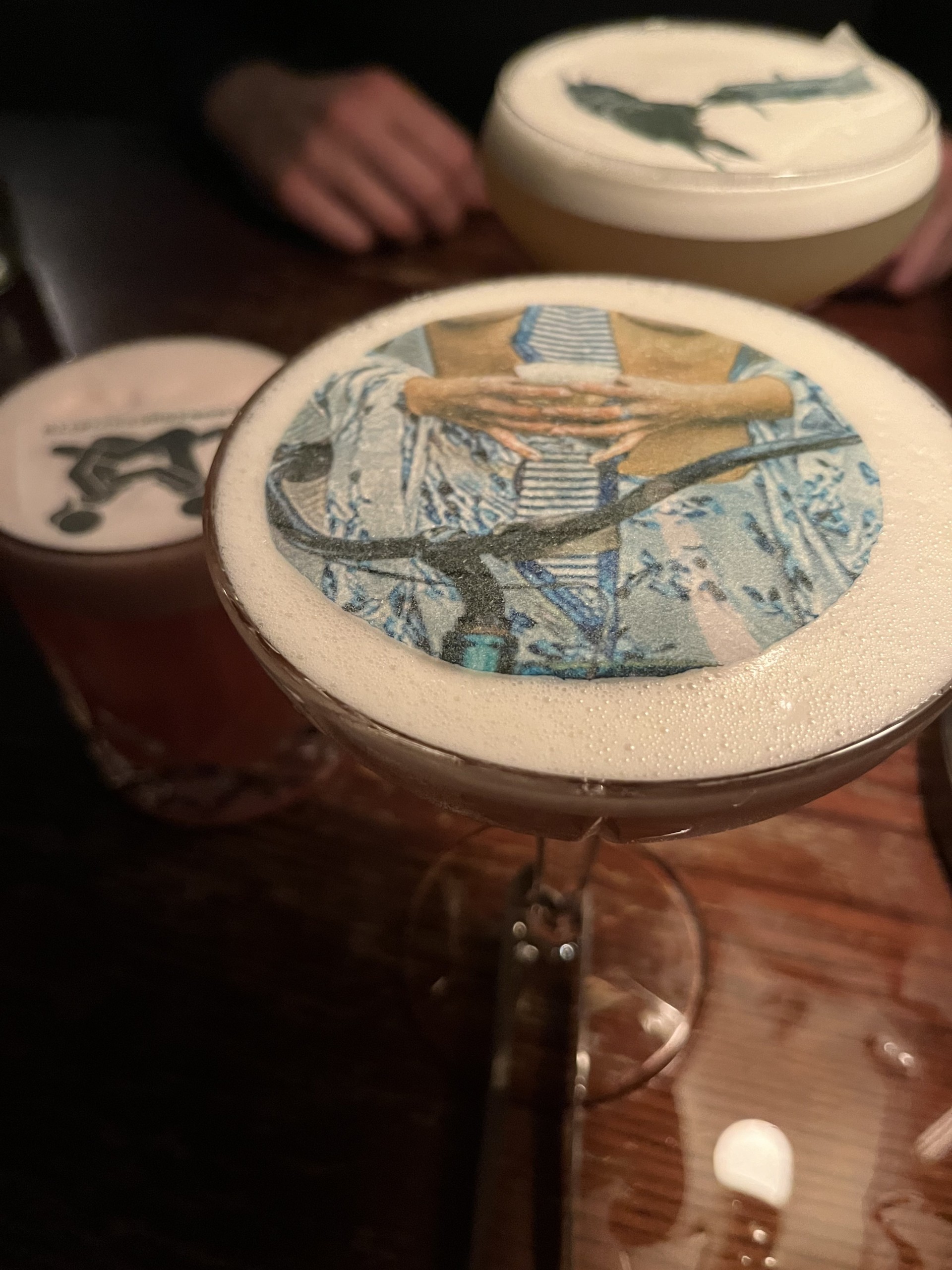 And just when you think it cannot get any cooler, each cocktail comes with a stencilled imprint lying on top; mine has an almost topless woman. “It’s edible!” says the waitress. I try it, but decide against it—it tastes like a soggy piece of paper.