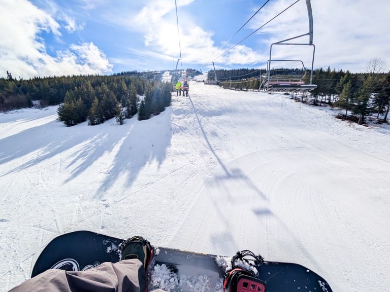 The conditions were great. The sun was shining, and there was a light dusting of fresh snow from the night before. I found some tight lines through the trees, my favourite spot to ride despite my wife’s disapproval, and was able to get some speed lines down the groomers. The terrain here is massive and wide open. I’ve already added it to my “must return” list for a powder trip next winter.