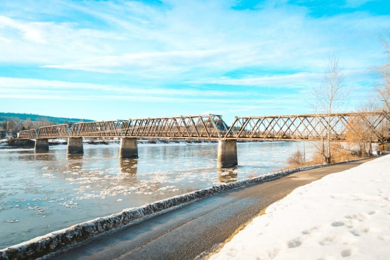 As we navigated around town, we kept an eye out for the “Little People“, a collection of painted fire hydrants spread throughout the downtown core. We capped off the tour with a walk across the Fraser River Footbridge, which holds the title of the longest wood-truss walking bridge in the world. Having scouted it earlier that morning, I can tell you that the sight of the frosty wooden deck overlooking chunks of ice floating down the Fraser is a stunning sight to behold.