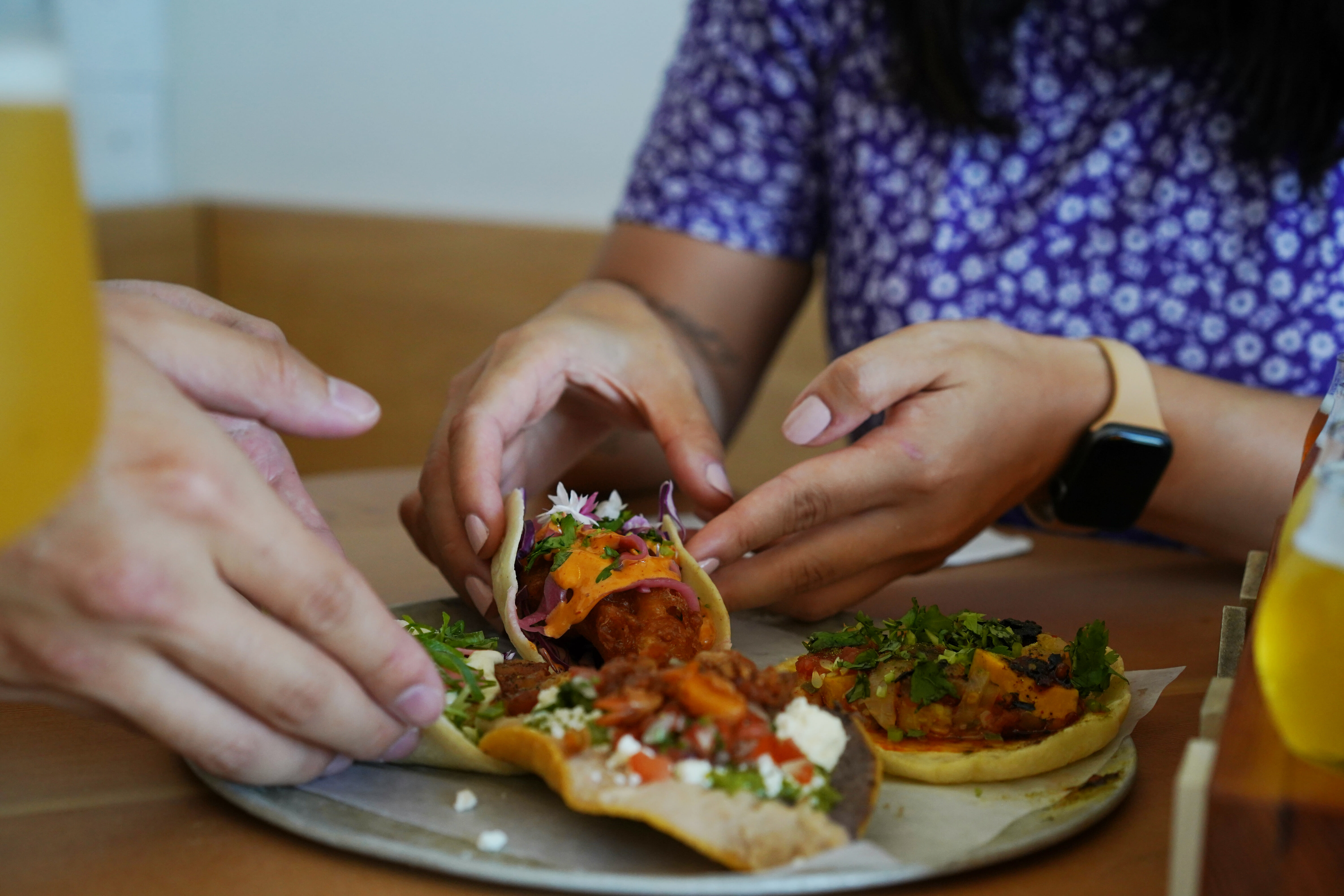 a plate of tacos at Four Winds Brewing Co. in Delta, BC