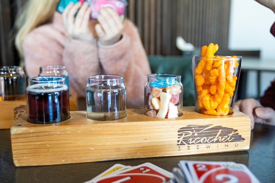 Ricochet is also a family-friendly spot that offers an array of games, kid’s food and drink options and, my kids’ favourite, the snack flight. It features two flight glasses of soda or juice, a glass of candy and a glass of cheezies. And let’s be honest here, it wasn’t just my kids’ favourite; it was mine too! So don’t be shy about ordering one for yourself, it isn’t just for the kiddos.