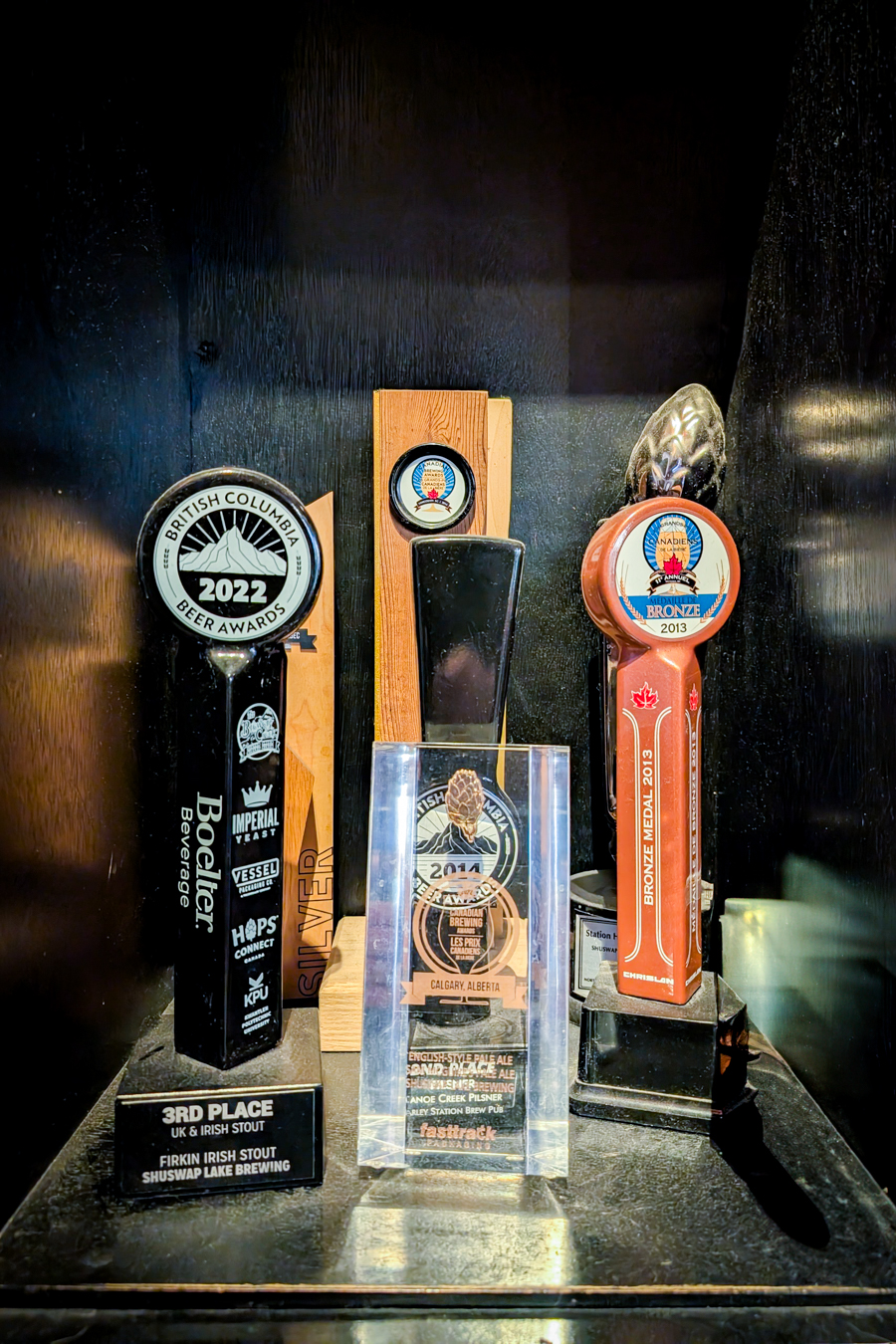 A Salmon Arm staple since 2006, The Barley Station offers a classic neighbourhood pub atmosphere for pub-goers 19+. But unlike most standard pubs, their brewing prowess has earned them multiple accolades. The pub boasts a cabinet full of trophies from the Canadian and BC Beer Awards over the years, as well as the Best Ale Award at the 2008 Okanagan Fest-of-Ale for their Sam McGuire’s Pale Ale. On my visit I sampled a flight of some of their core beers and the standout for me was the Bushwacker Brown Ale.