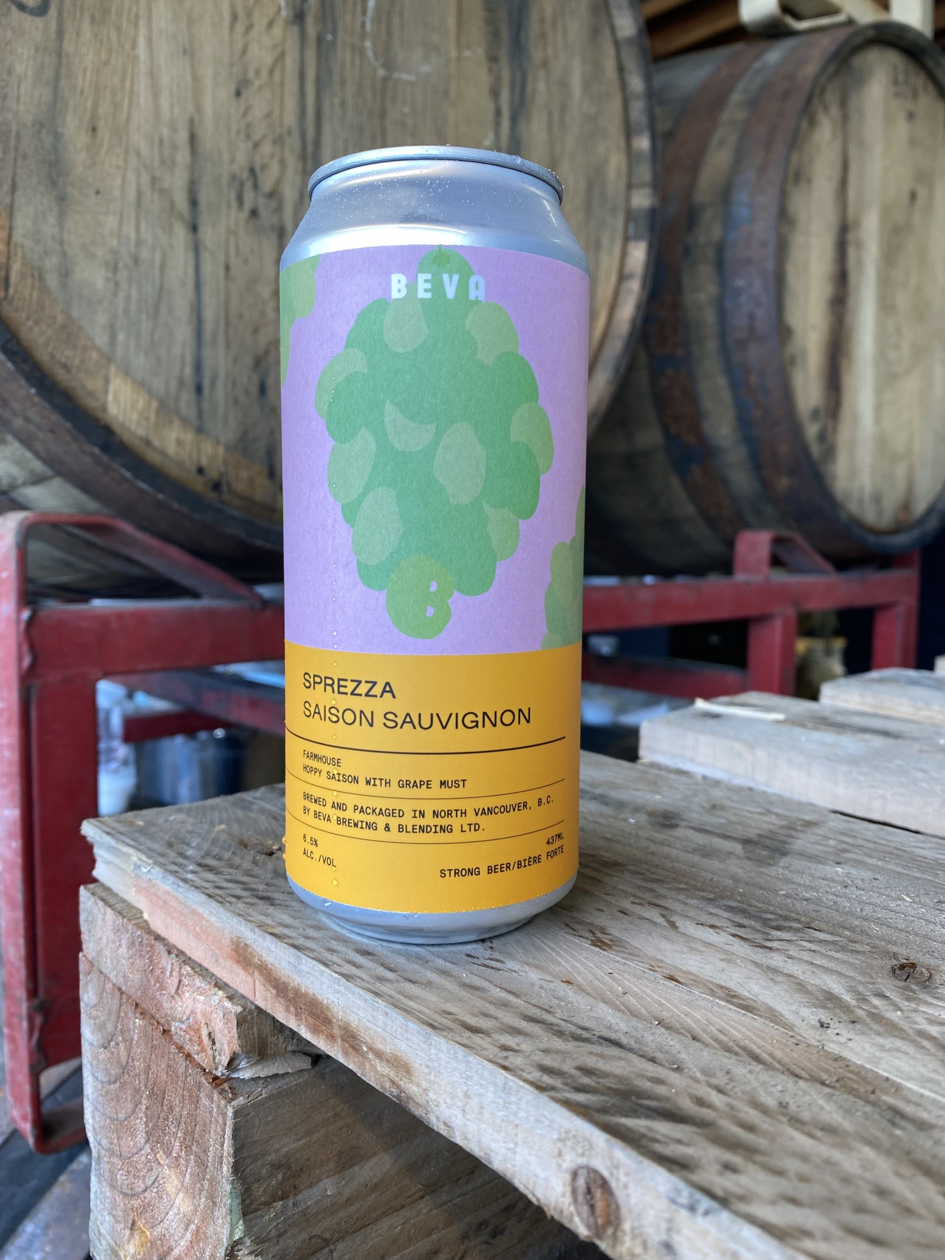 - Sprezza Saison Sauvignon (6.5% ABV | 30 IBU) A farmhouse ale fermented with Beva’s house mix culture, dry-hopped with Nelson Sauvin, and re-fermented with sauvignon blanc grape must.
