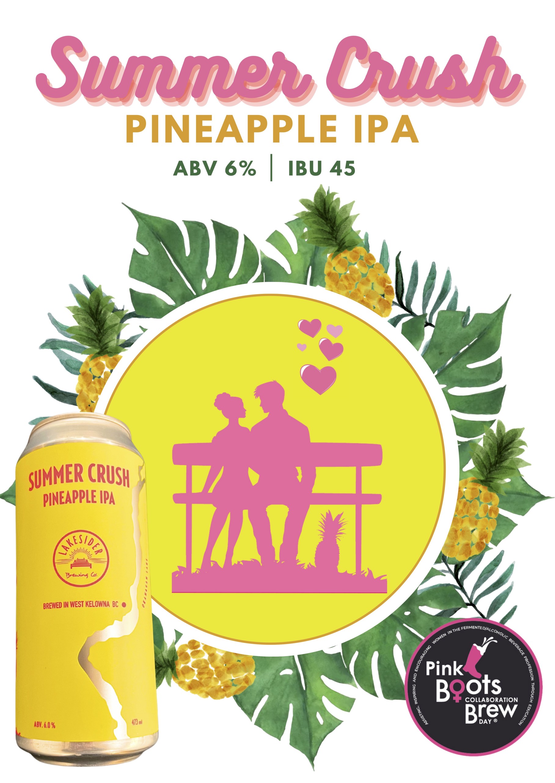 - Summer Crush Pineapple IPA (6% ABV | 45 IBU) Featuring a tropical blend of hops with the soft kiss of pineapple.