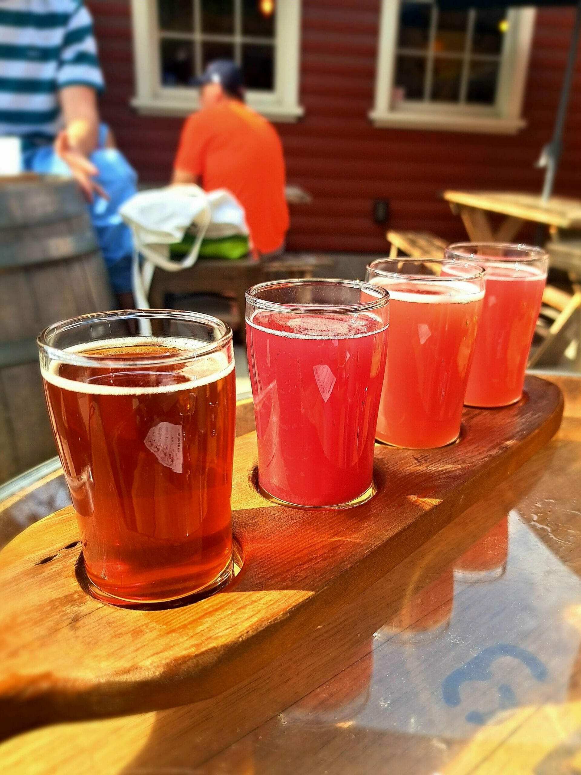 A colourful flight of beer at Rustic Reel Brewing in Kelowna, BC