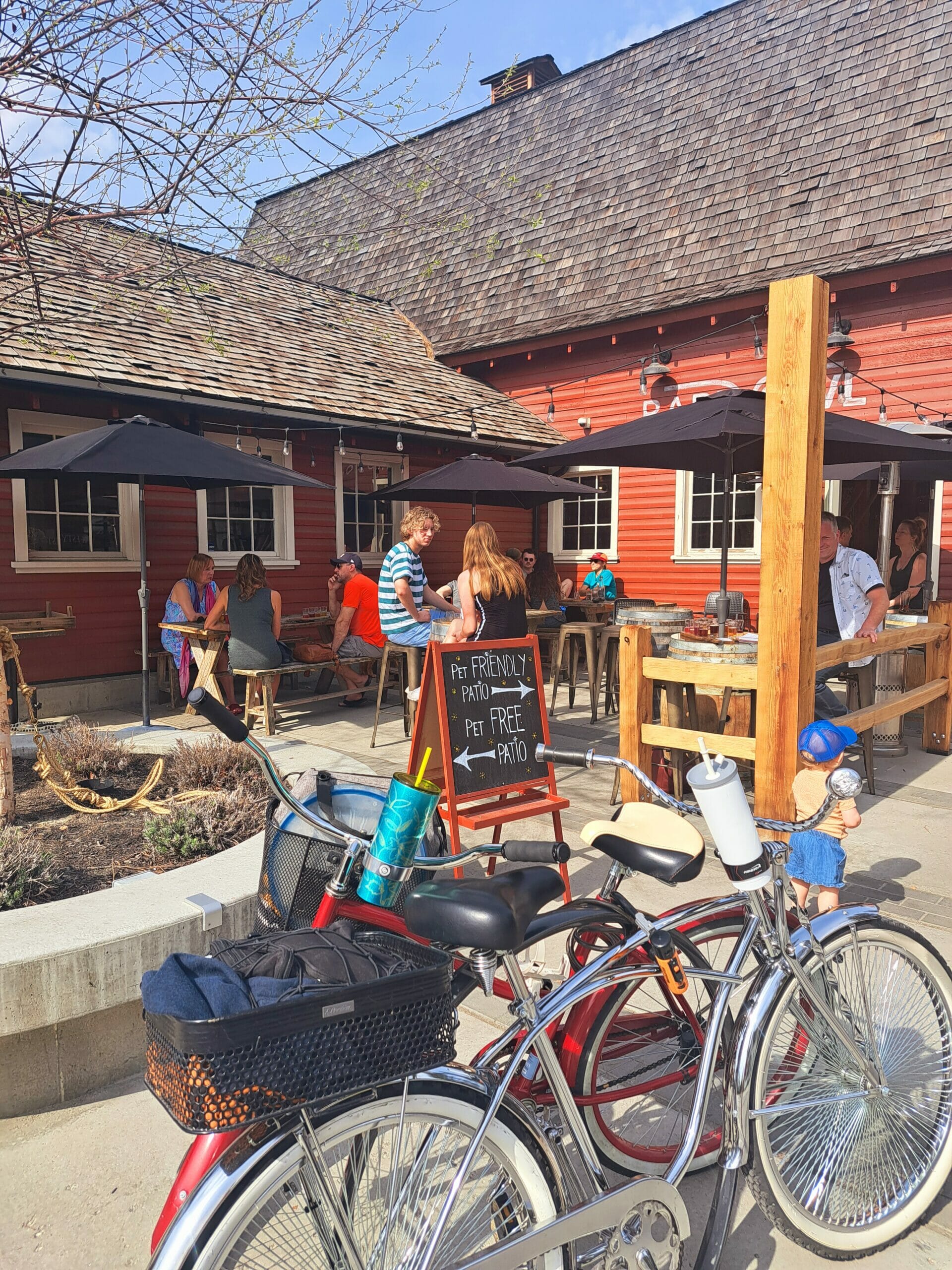 Barn Owl Brewing, in the Mission area of Kelowna, is a little out of the way and so is sometimes overlooked by those heading to the brewery district, but it really is worth the short detour. This is our go-to Kelowna brewery in winter as the taproom nestled in the rafters of the historic 1920s Surtees Barn is the coziest we’ve found anywhere in Canada (a bold claim I know, but one we’re sticking with), and their Vanilla Chestnut Ale is my favourite winter sipper. In the past, the brewery has been rather stymied by its lack of outdoor space for the summer months, but no longer. The new acquisition of an on-site bakery means that Barn Owl has been able to expand its patio, as well as its food and drink menu. On this sunny Sunday afternoon, bikers and dog walkers thronged happily in the sunshine, sipping beers and coffees, while live music drifted outside from the musician who entertained the shade seekers inside.