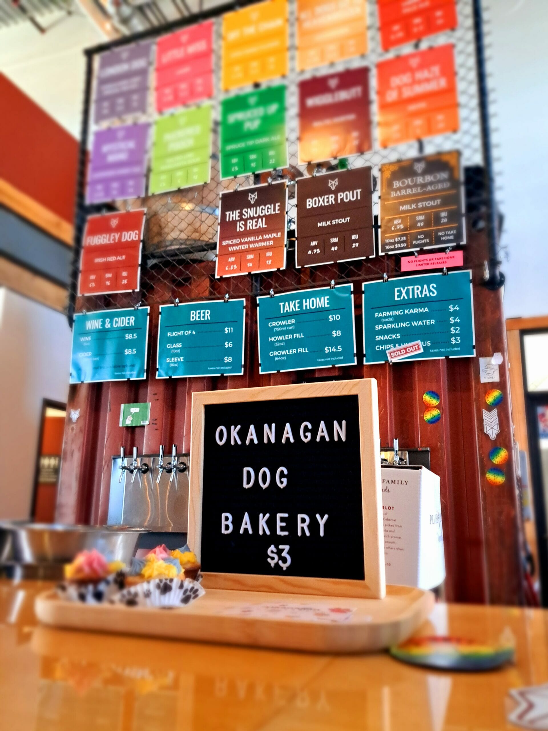 Seeing as we had our four-legged friend along for the ride, we decided that the next visit really had to be Unleashed Brewing — the self-proclaimed “most dog-friendly craft brewery” in Kelowna. Dogs certainly are at the heart of the operation here, with the beers all named after dogs and some awesome canine branding. Canine companions are not only welcome on the patio at Unleashed, but they are the first brewery in BC to be approved by Interior Health to allow dogs in the taproom. This is fantastic on those cold winter days when a patio is less than appealing, but similarly, as the thermometer climbs and the patio becomes too hot for those wearing fur coats, the taproom offers a cool sanctuary. The hospitality offered to pampered pooches in the taproom really is top-notch, with doggy beds, water bowls, “beer” and snacks, and even a little fire hydrant on offer to make them feel at home (I’m fairly certain they are discouraged from “using” the hydrant though). There is a wide selection of beers to choose from and a brand-new Lavender Honey Ale (Mystical Manu) has just been released. Our favourites had to be the deliciously malty All Dogs Go To Heavenweizen, and the London Dog Special-tea Ale which is sweet and crisp with unmistakable hints of vanilla and Earl Grey tea.