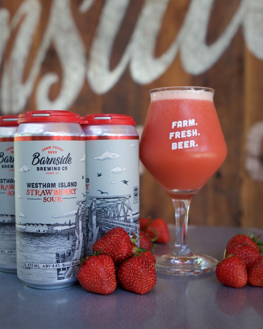 - Westham Island Strawberry Sour (4.4% ABV) A collab beer with Emma Lea Farms on Westham Island. This beer was brewed with over 500kg of strawberries freshly harvested from their farms. Strong aroma and taste of ripe strawberries and orange result in a beer bursting with flavours of summer!