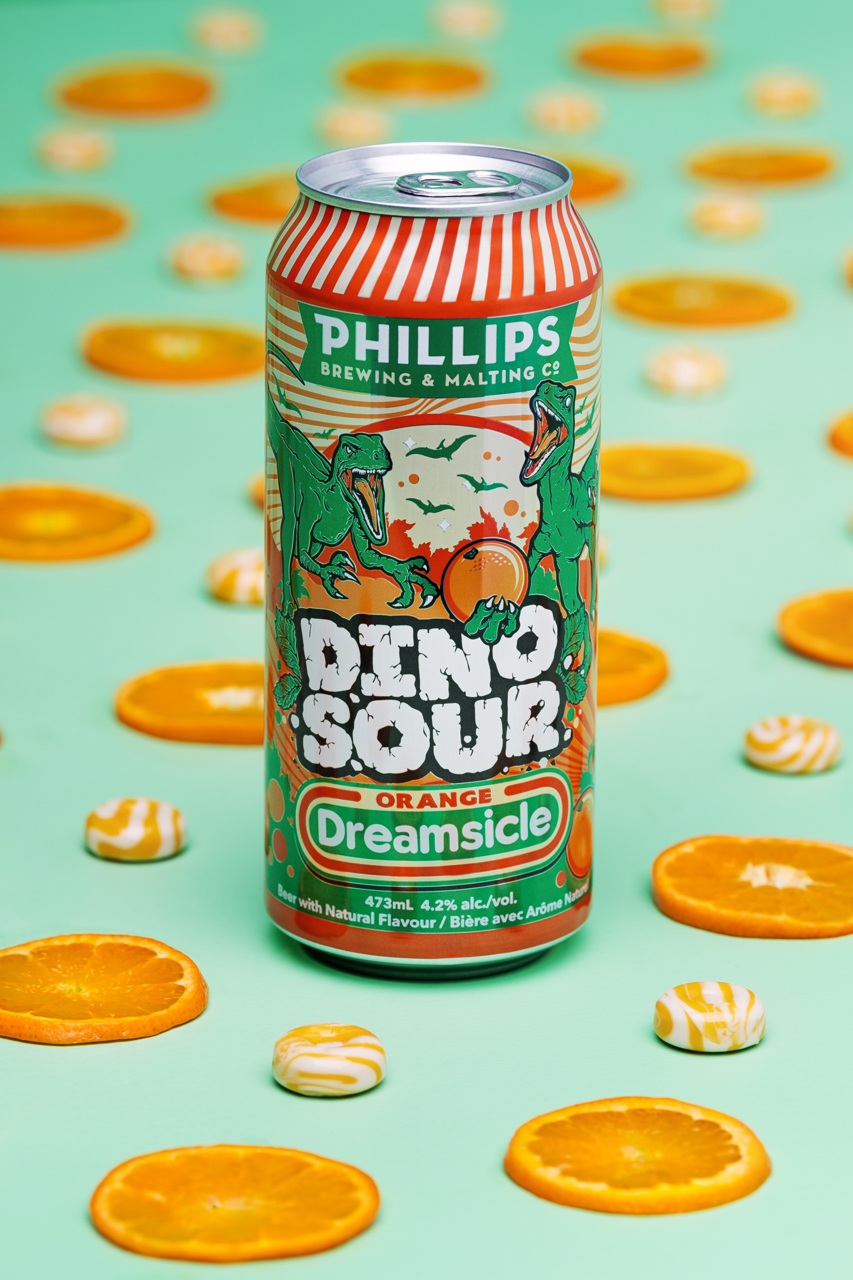 - Dinosour Orange Dreamscicle Sour (4.2% ABV) Dinosour Orange Dreamscicle sour packs a delightfully tart bite. Soured with our house-cultured lacto strain, orange juice is added pre- and post-fermentaceous period, balancing the tart citrus bite with vanilla and juicy fruit sweetness.