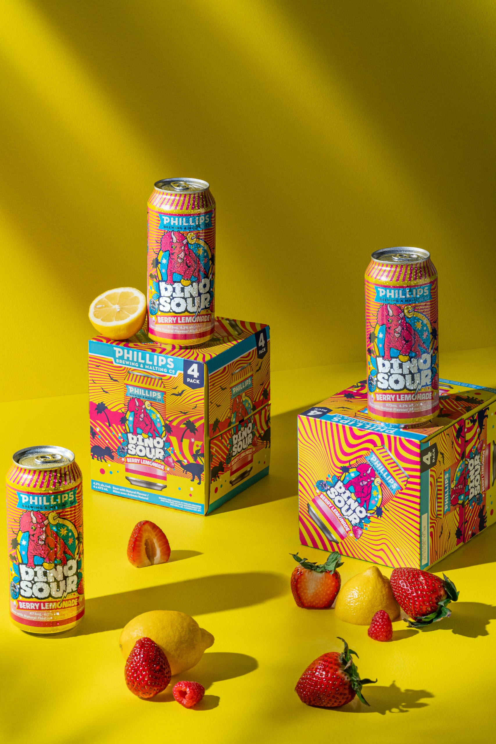 - Dinosour Berry Lemonade Sour (4.2% ABV) Bursting with the refreshing flavour of ripe BC berries and zingy lemonade, this enticing sour ale has the perfect balance of sweet and tart.