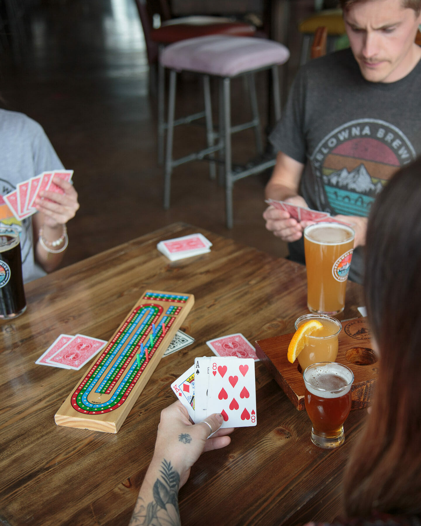 It’s not just about crib boards and cards anymore, although finding a handcrafted and brewery branded crib board in the merch section might just make your day.