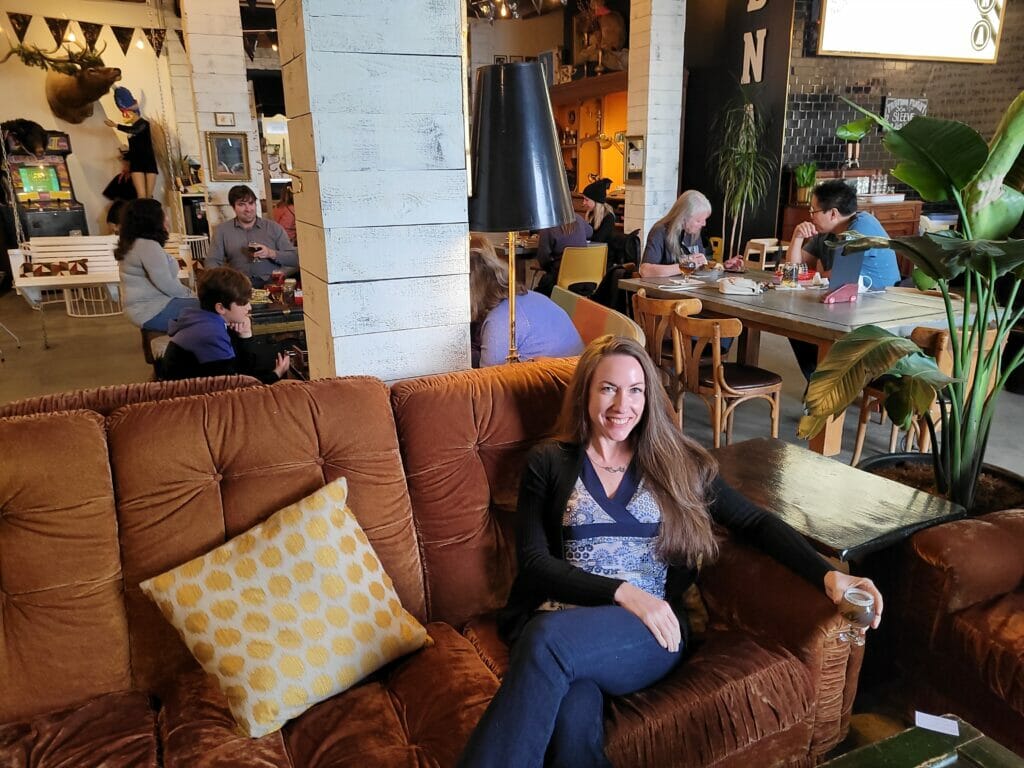 After we finished our visit to Lakesider, we headed across the bridge into the city. If you go to the left past the waterfront and over to Ellis Street, you’ll find BNA Brewing (est. 2015), one of many craft breweries in Kelowna’s North End neighbourhood. Located in a building that was used to dry tobacco leaves over a century ago, and then operated as a cannery shortly after that, BNA definitely has character. Historical paraphernalia, dart boards, funhouse games, animal heads mounted on the walls, and an odd variety of seating, from couches to bowling alley benches to bleachers, all combine to make BNA a mishmash of eras and cultures. There’s nothing cookie-cutter or neutral about it, so come for the beer and stay for the ambience.