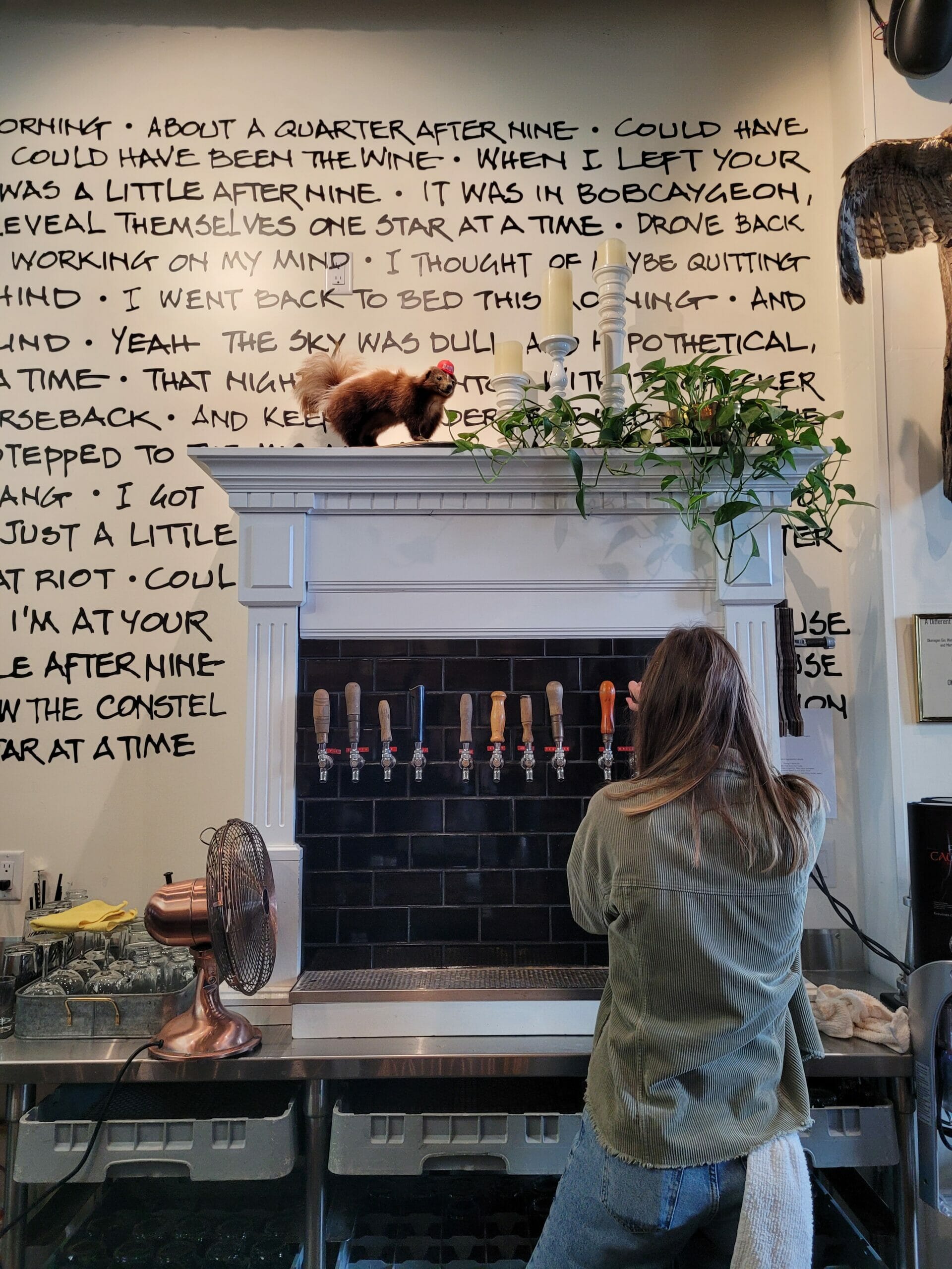 Kelowna in February can be chilly in general, but my husband Rich and I happened to arrive in the middle of a particularly brutal cold snap. Despite the weather, our first brewery visit, to Lakesider Brewing (est. 2021) in West Kelowna, brought us back to hot Okanagan summers — sunny days and beachfront sunbathing. Lakesider is bright and airy, with white tiled walls, a tree in the corner, a feature fireplace constructed from river rock, and images of the Okanagan’s beaches on its walls. As I watched co-owner Kieran Armour pull a pint, I noticed that even the tap handles were painted like the lakeshore.