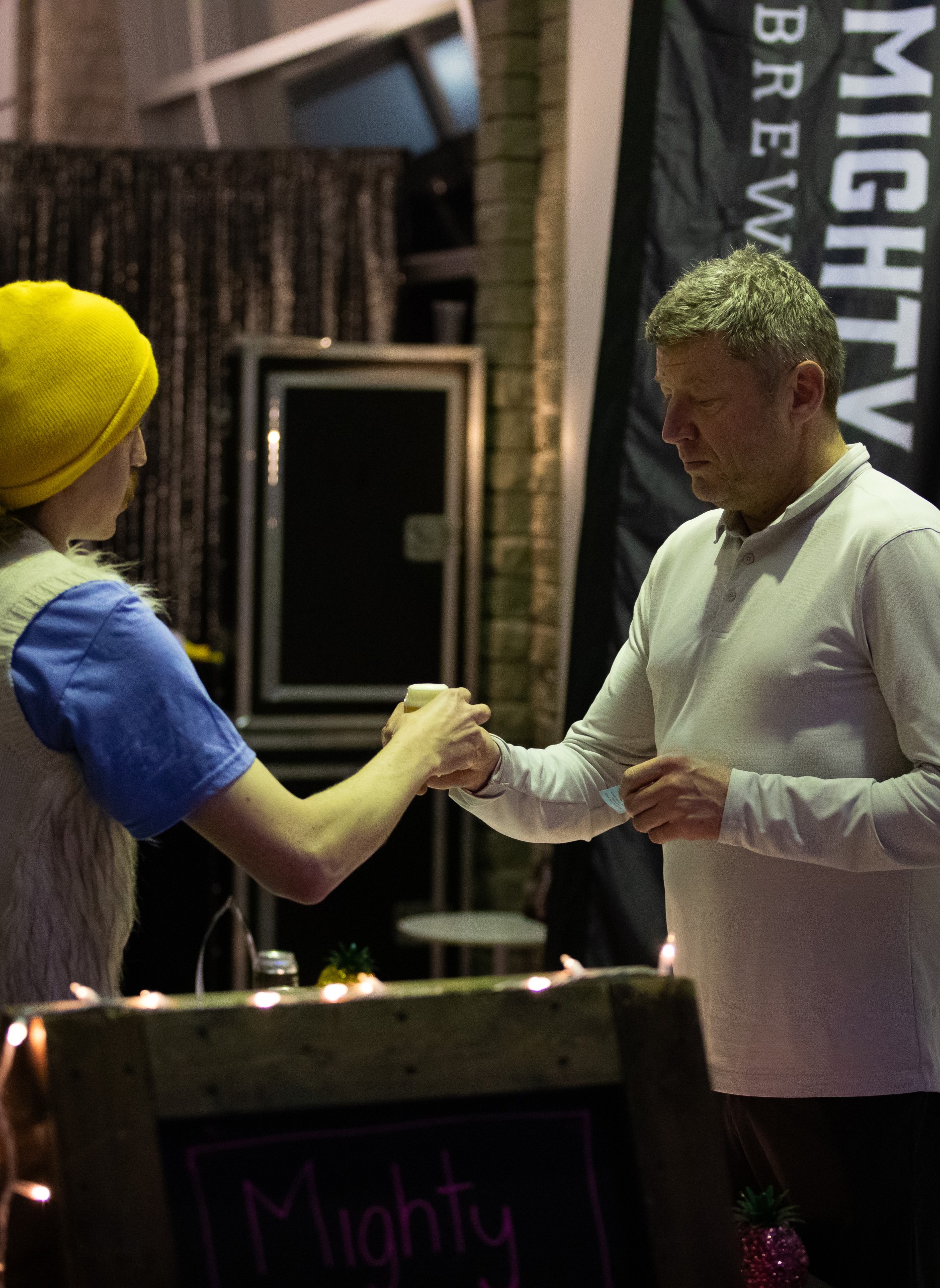 The 2024 Kiwanis AleFest was a very special and memorable experience. As a person who loves hiking and the outdoors, what made me feel warm was the detailed wooden hand-crafted signposts that directed you to the multiple craft breweries, cideries, kombucha breweries, and the many restaurants in attendance. It was like being on a mini-BC Ale Trail within a wonderful venue with warm ambience. I could attribute this to the inviting, helpful, and professional volunteers, the lighting, the music, the photo booths, the silent auction area, and the overall feeling by just being present in this environment itself. Plus, it made me very happy to see the event goers enjoy their experience. Another thing that I loved was being able to choose one out of seven individual tasting glasses that were originally released and uniquely designed for past Kiwanis AleFest events.