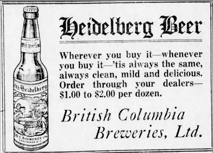 The first brewery in Kitsilano was an outgrowth of one of Vancouver’s first breweries. Around 1910, Charles Doering’s Vancouver Breweries, where Main Street Brewing now sits, turned that location into its office when it consolidated with Henry Reifel’s Canadian Brewing and Malting plant at Yew and 11th. This brewing facility was the largest and most expensive brewery built in Vancouver at that time — the equivalent of $5 million in today’s currency! Vancouver Breweries and CBM merged to become BC Breweries, which produced a range of popular beers at that plant, including Heidelberg, UBC Bohemian, Cascade, and BC Export.