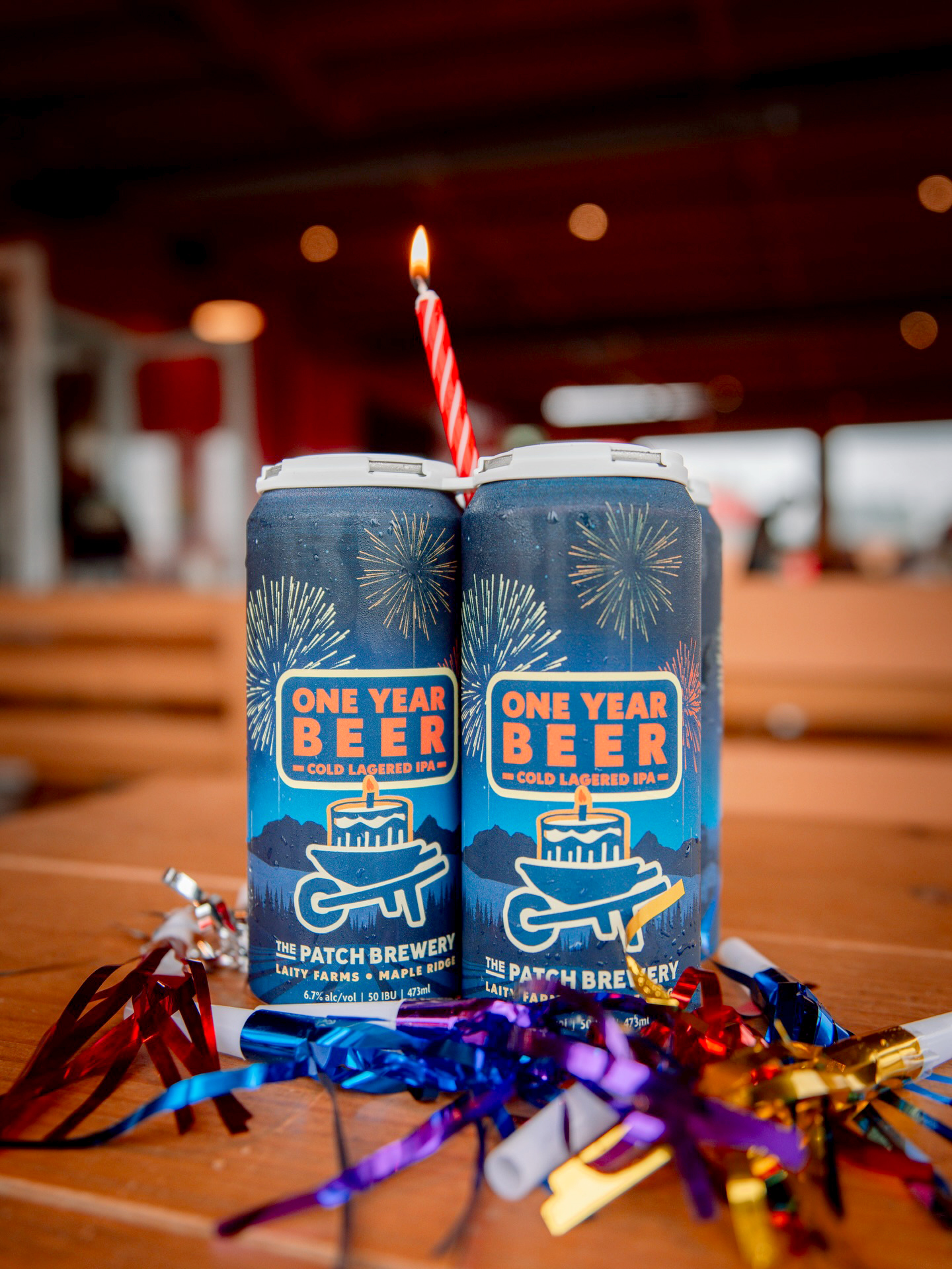 Today, The Patch is releasing its much-anticipated first anniversary beer – their “One Year Beer”, a cold-lagered IPA that’s similar to a West Coast IPA but crisper and cleaner. Using a superpowered lager yeast strain (for the brewing science nerds, the superpowers involve biotransformation caused by the release of thiols), Michael brewed the beer with BC-grown Saaz and Cascade hops, fermented it, dry-hopped it with tropical New Zealand hops, aged it in a foeder, krausened it in a stainless steel tank, then double dry-hopped it.