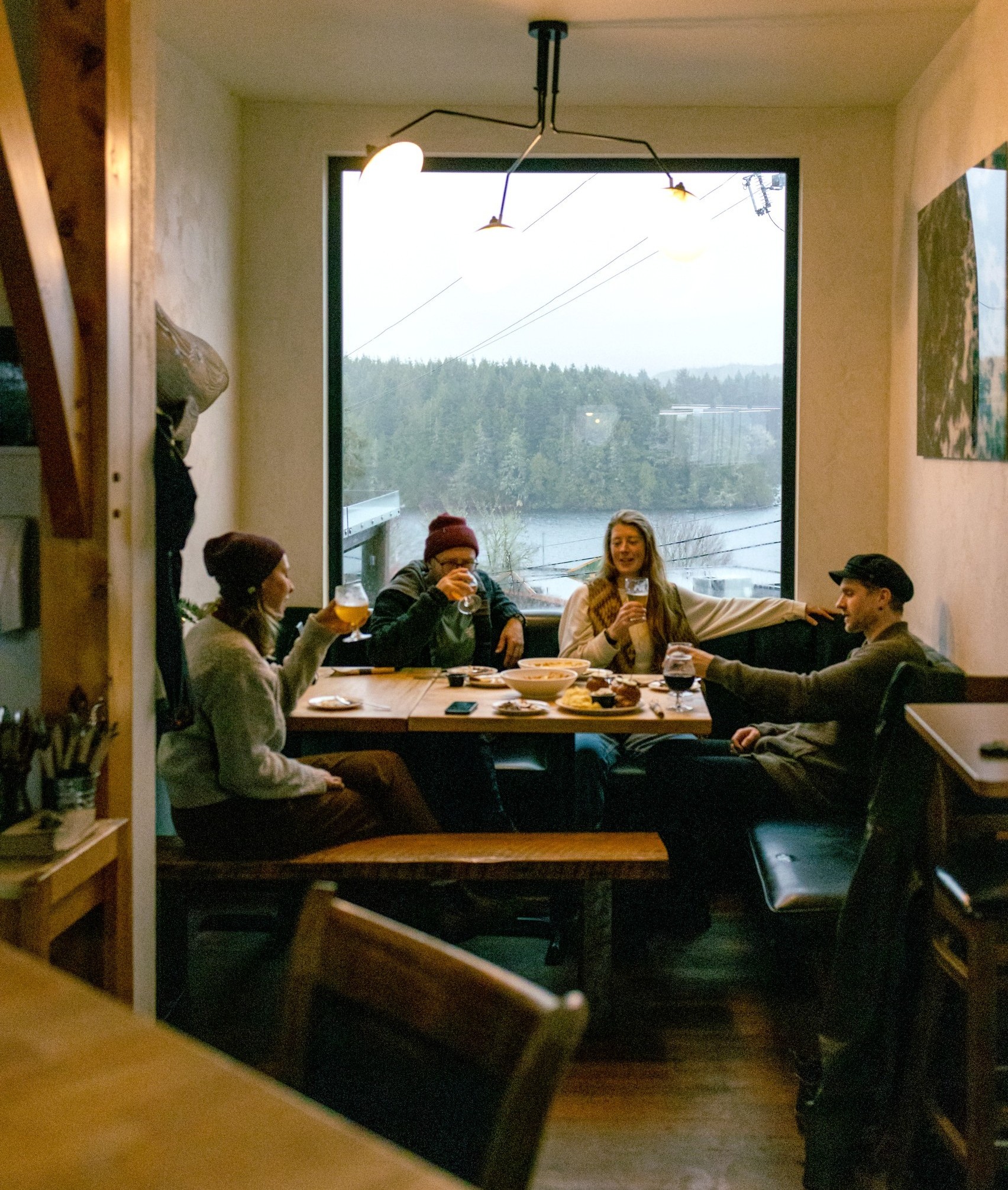 In the kitchen, the menu reflects the region itself. Dishes showcase local ingredients, with everything from ocean catches to foraged finds and thoughtfully raised BC meats showcasing fresh, seasonal and full-flavour bites. The offerings shift with the seasons, giving both locals and visitors something new to look forward to.